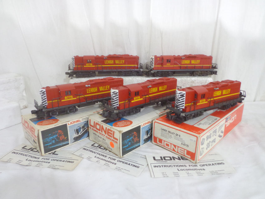 | Lot 121 | Lionel 3 #8775 Lehigh Valley GP-9 Engines, #8800 Lehigh Valley Engine and #8778 Lehigh Valley Non-Powered Engine/OBs |