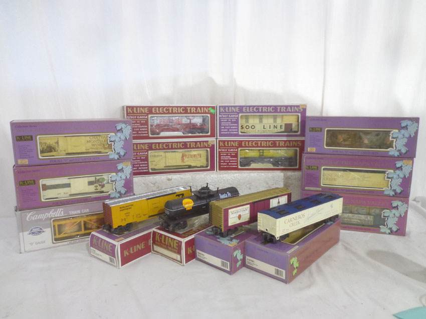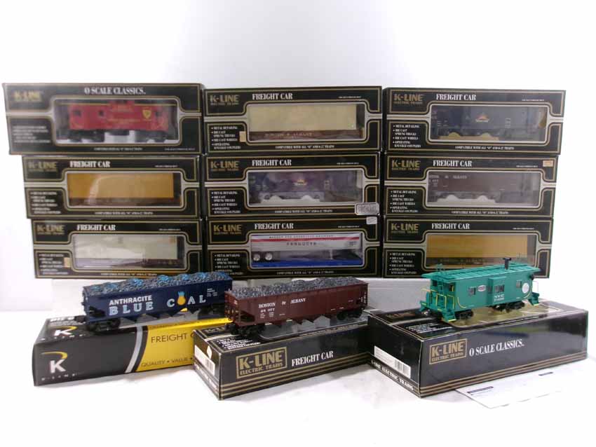 | Lot 33 | 12 Assorted K-Line Freight Cars and Cabooses/OBs |