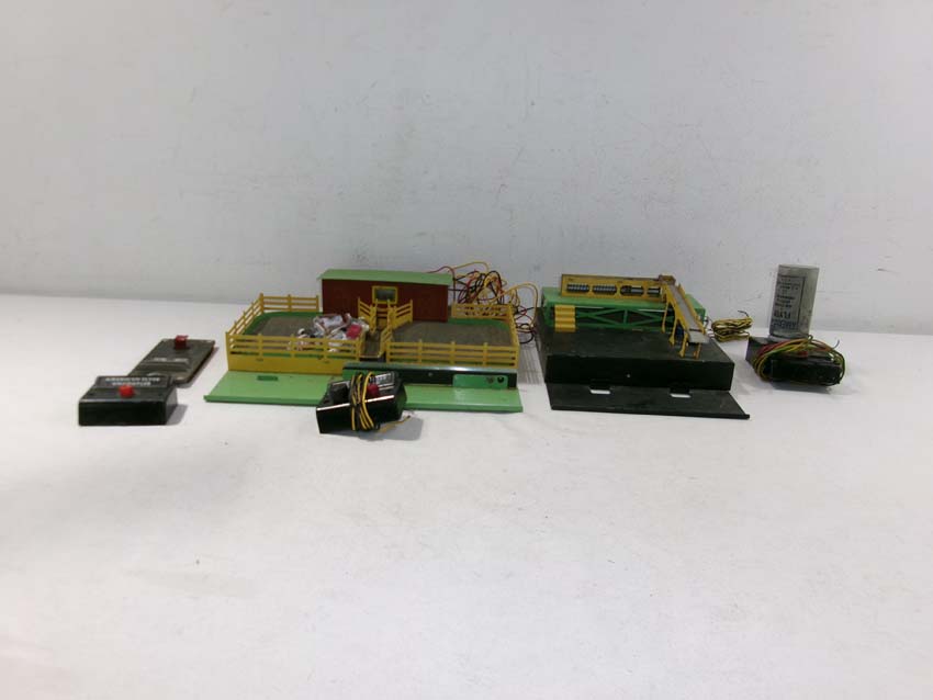 | Lot 251 | American Flyer S Gauge: #771 Operating Stockyard w/Cattle & Button, #770 Operating Loading Platform, #708 Air Chime Whistle Control Unit and #696 Track Clip |