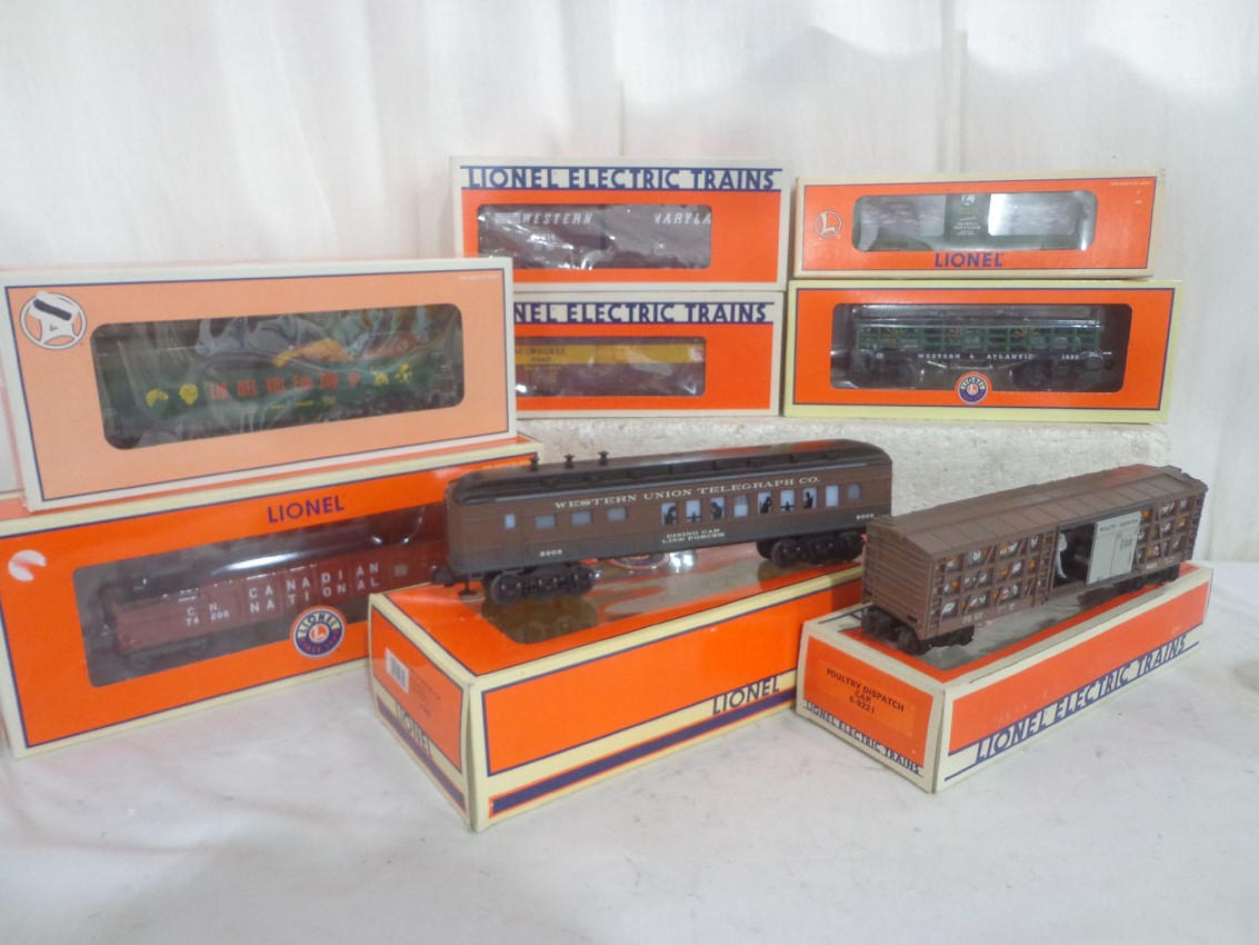 | Lot 370 | 9 Assorted Lionel Box Cars, Tender & Caboose/OBs |