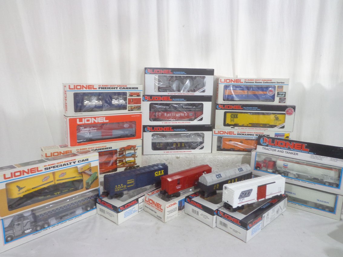 | Lot 375 | 17 Assorted Lionel Freight Cars and Tractor Trailer/OBs |