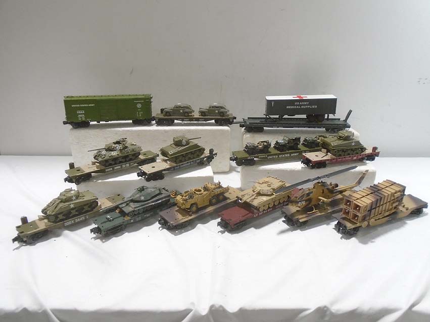 | Lot 376 | 13 Assorted Menards/K-Line/MTH Military Flat Cars w/Military Loads |