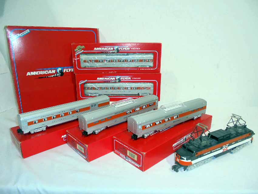 | Lot 24 | American Fyler S Gauge #8008 NH EP-5 Electric Engine, #48938 NH Vista Dome Car, #48943 Vista Dome Dining Car, and #49605 NH 3-Car Passenger Set/OBs |