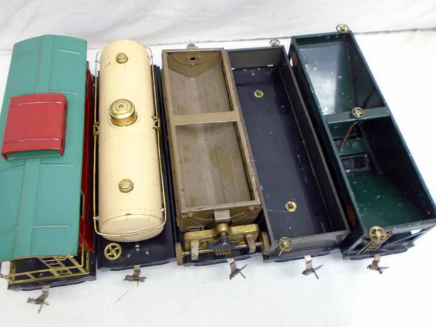 These are the Standard Gauge #212 Gondola, #215 Tank Car, #216 Hopper, #218 Dump Car and #217 Caboose that Lionel made in the 1920s/30s. No Boxes. Examine very closely; what is pictured is what you will receive. Please add $75.00 for US-48 Shipping and Insurance (more west of the Mississippi).