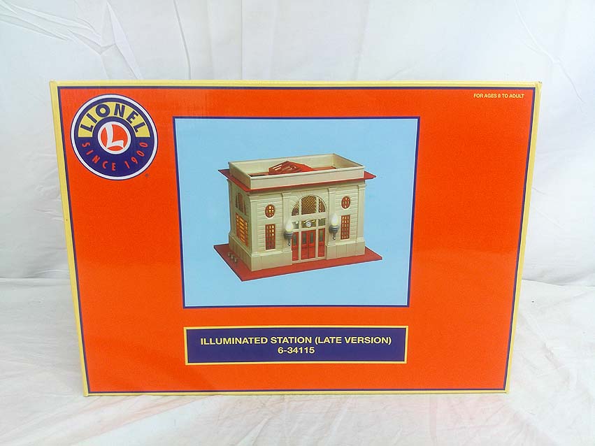 These are the #34115/34116 Illuminated Terrace w/Illuminated Station Set (Both Late Version) that Lionel made in the recent past as a rep ructions of the 1930s items. Original Boxes. Examine closely; what is pictured is what you will receive. Please add $125.00 for US-48 Shipping and Insurance (more west of the Mississippi).