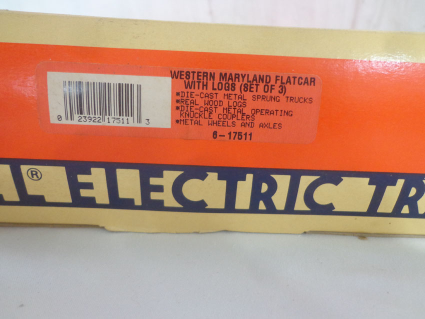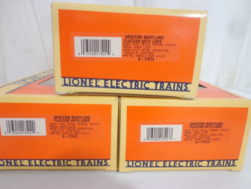 Mint Lionel #17511 Western Maryland Flat Cars with Logs Set of 3/OBs