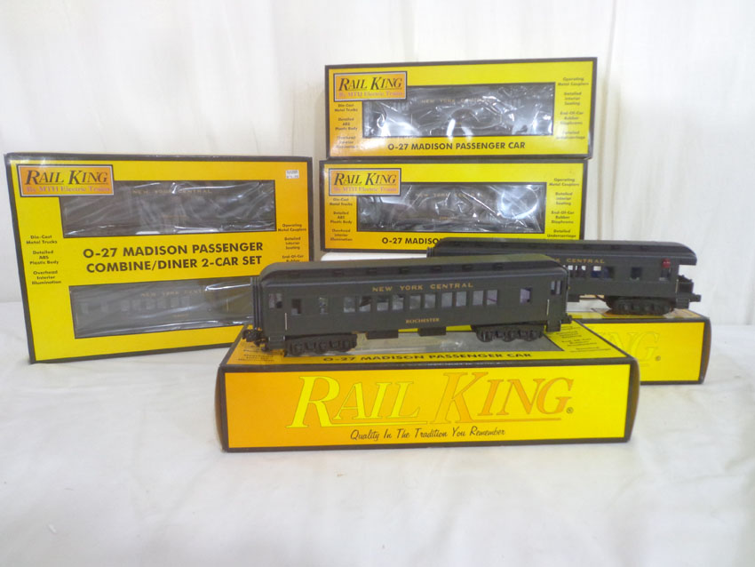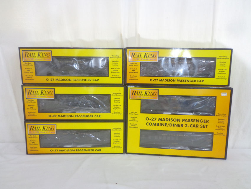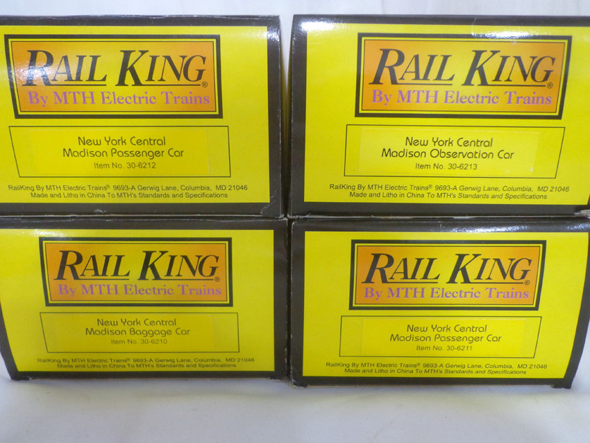 These are the MTH #30-6210/30-6211/30-6212/30-6213 New York Central Madison Passenger Cars and the #30-6214 New York Central Combine/Diner Set from a few years ago. A total of six cars. Our Opinion is that they are generally in Like New Condition. Original Boxes. All Original in our Opinion. Please add $45.00 for US-48 Shipping and Insurance (more west of the Mississippi).