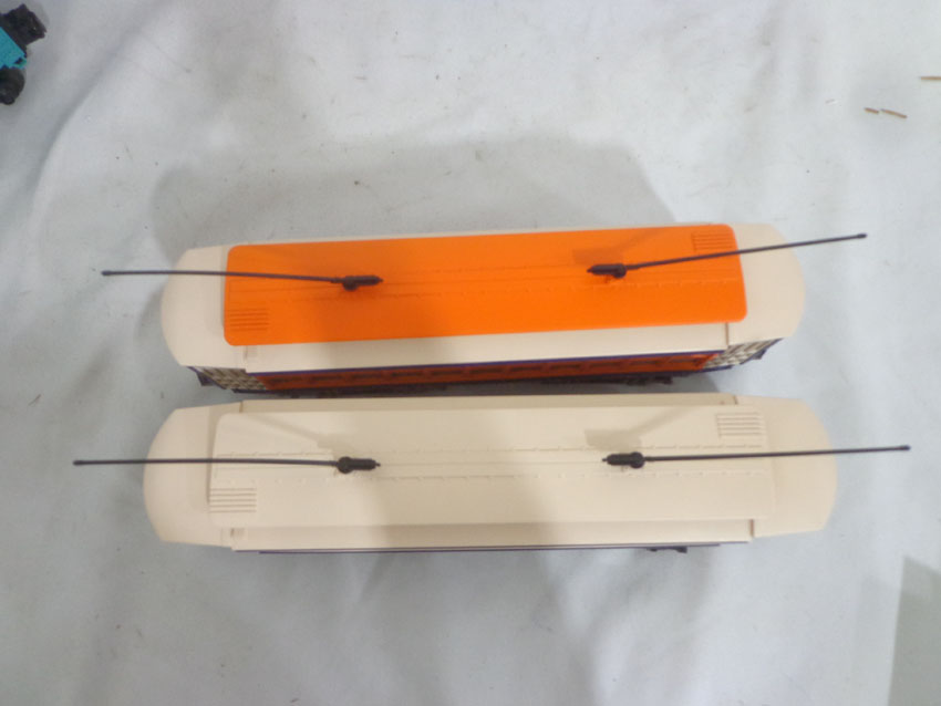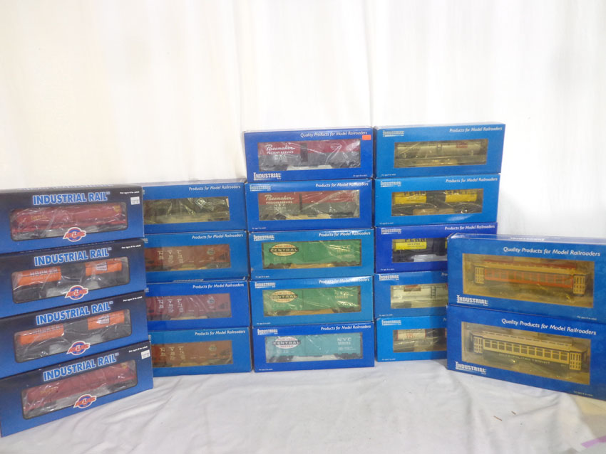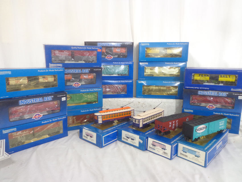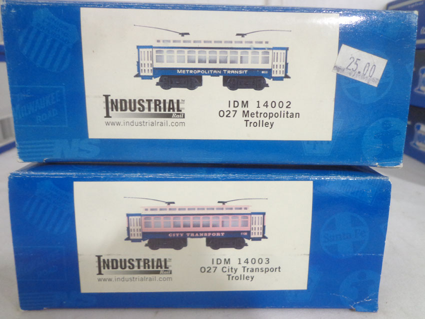 These are the #IDM 14002 Metropolitan Trolley, #IDM 14003 City Transportation Trolley and eighteen Assorted Freight Cars that Industrial Rail/Atlas. Our Opinion is that they are generally in Like New or Better Condition. Original Boxes. All Original in our Opinion. Please add $60.00 for US-48 Shipping and Insurance (more west of the Mississippi).