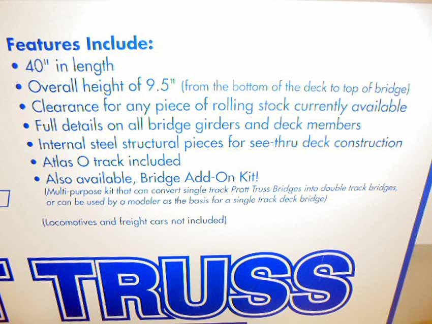 This is the #6921 Double Track Pratt Truss Bridge Kit that Atlas made in O Gauge a few years ago. Our Opinion is that it is generally in Mint Condition. Original Box. All Original in our Opinion. Please add $40.00 for US-48 Shipping and Insurance (more west of the Mississippi).