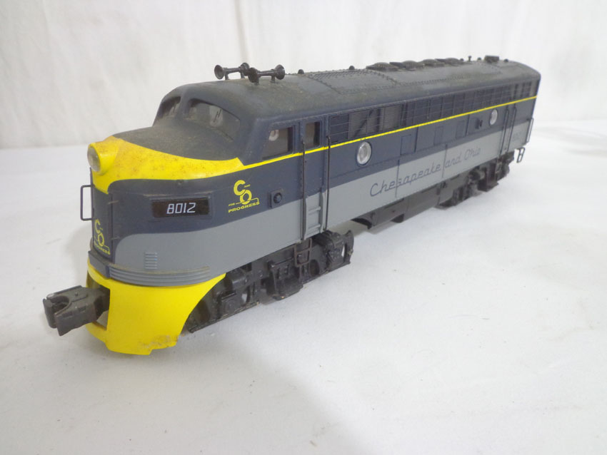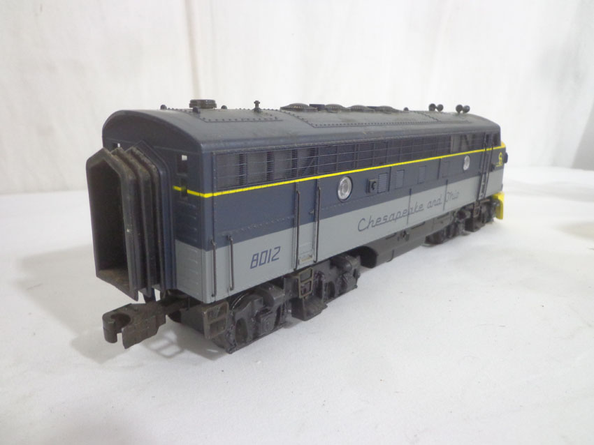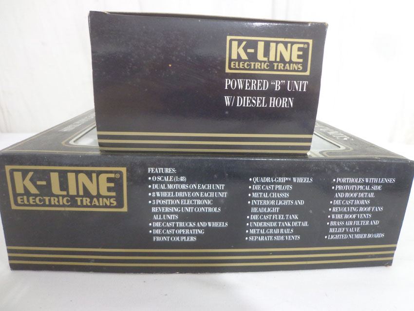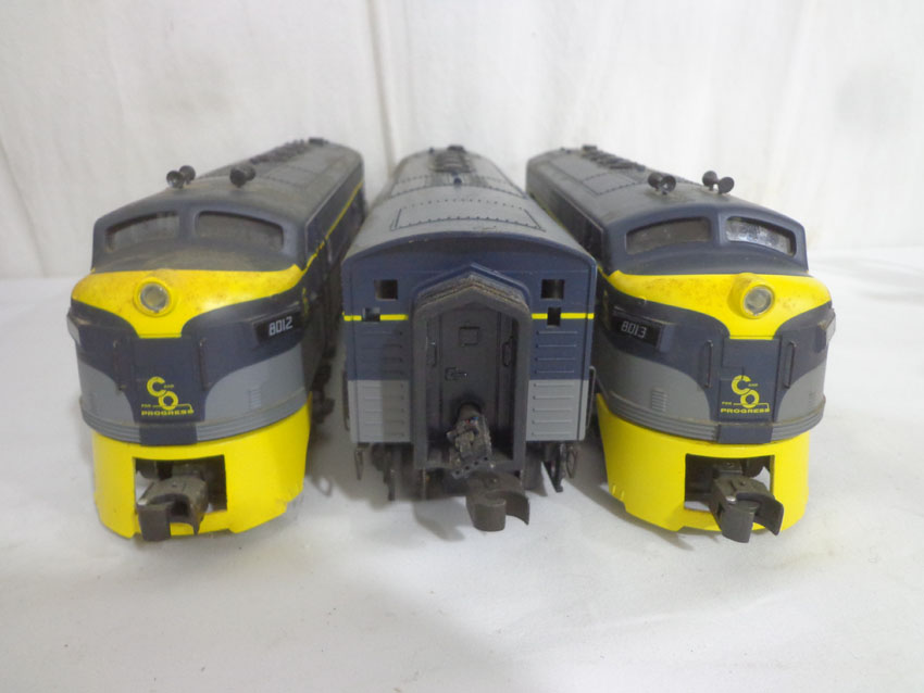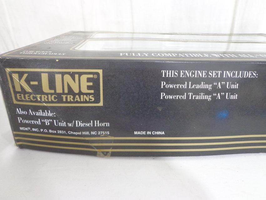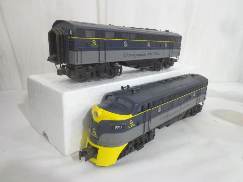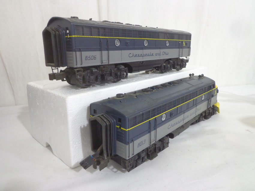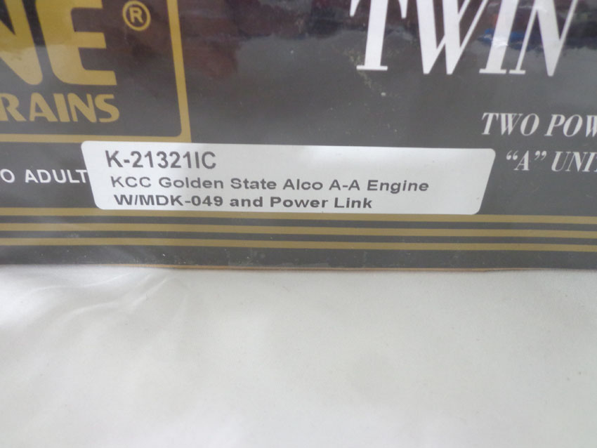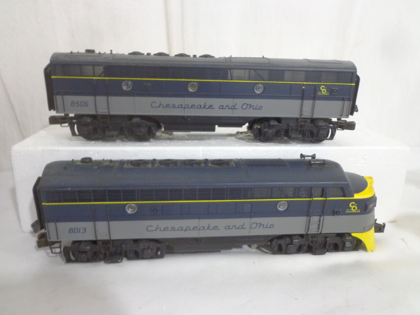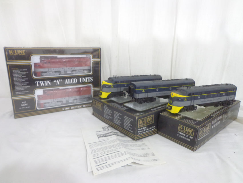 These are the (SEALED) #K-21321IC KCC Golden State AA Set and the #8012/8506/8013 C&O ABA Set with Powered B Unit that K-Line made a few years ago. Our Opinion is that they are generally in Like New or Better Conditions. Original Box. All Original in our Opinion. Please add $50.00 for US-48 Shipping and Insurance (more west of the Mississippi). |
