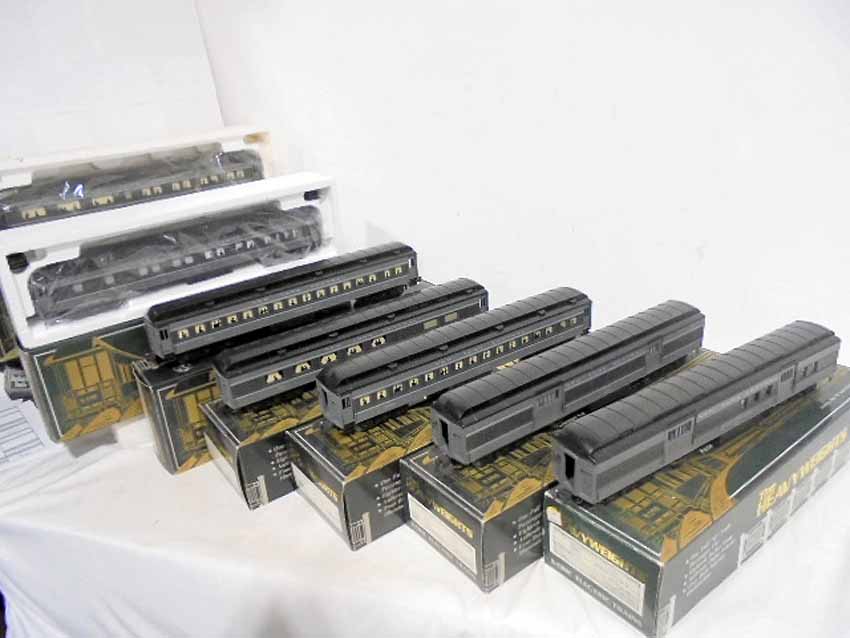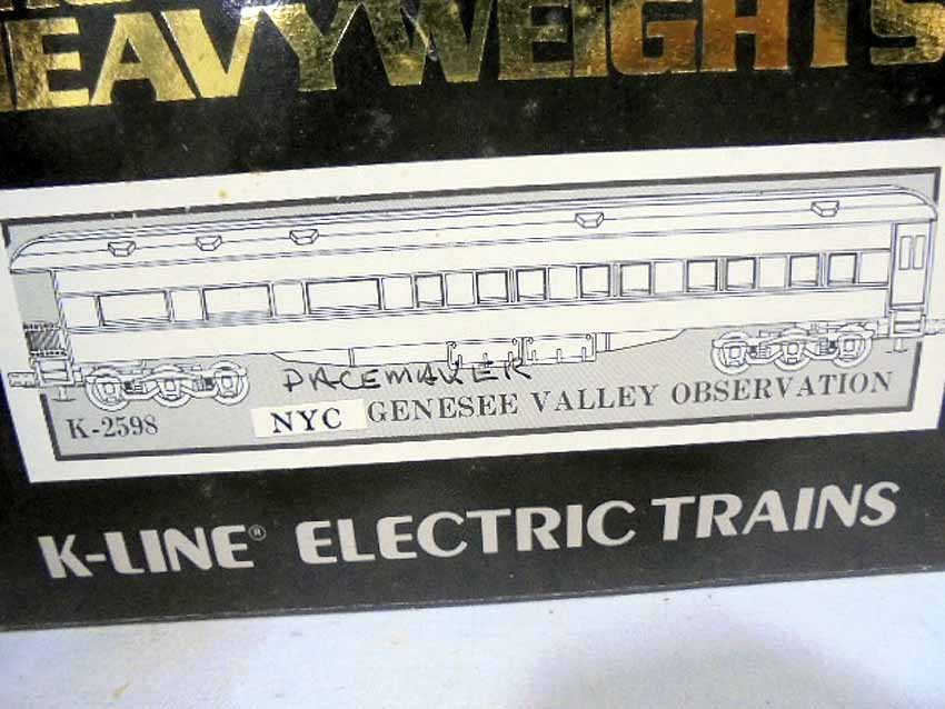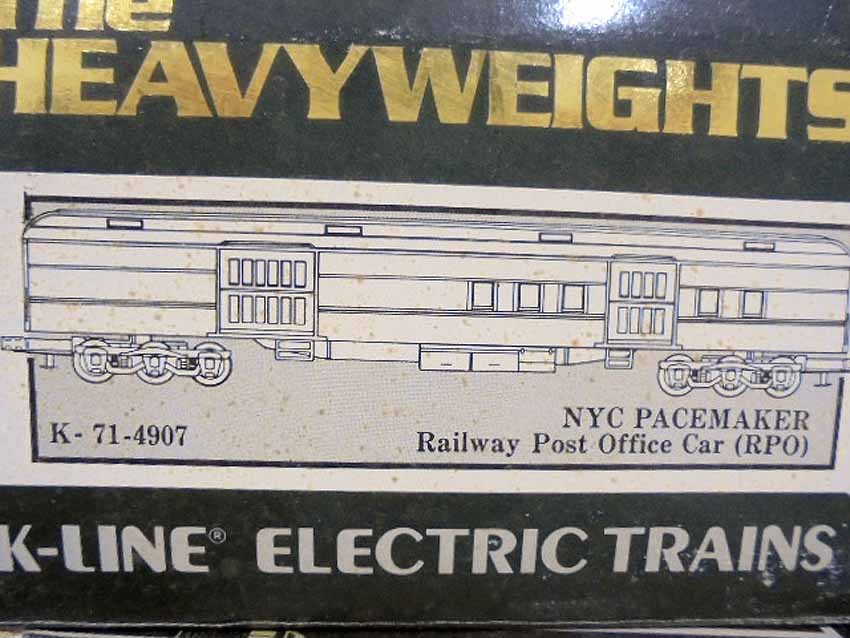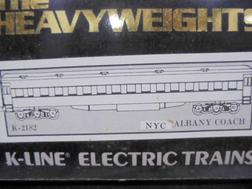 These are the #K-71-4907 RPO Car, the #K-8650 Baggage Car, the #K-2818 Chicago Coach, the #K-2182 Albany Coach, the #K-0609 Diner Car, two #K-71-0005 Lake Placid Pullmans, and the #K-2598 Genesee Valley Observation Car that K-Line made a few years ago (one car is not shown in the first picture). Our Opinion is that they are generally in Like New Condition. Original Boxes. All Original in our Opinion. Please add $60.00 for US-48 Shipping and Insurance (more west of the Mississippi).