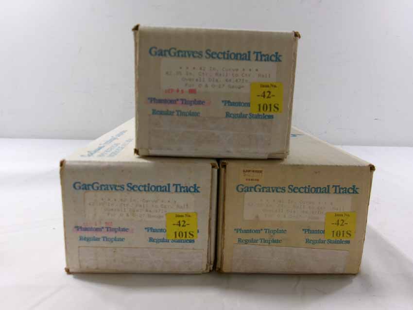 Mint GarGraves 3 Boxes of #42-101S Curved Track (24 sections, 42" dia.), box of #63-101S Curved Track (8 sections, 63" dia), and box of #72-202S Curved Track (8 sections, 72" dia.)/OBs