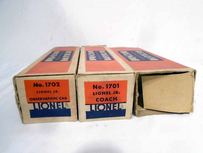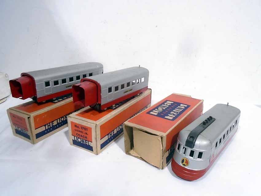These are the Lionel #1700 Lionel Jry Flying Yankee and #1701/1702 Coach/Observation Car made in the 1930s. Original Boxes. Examine very closely; what is pictured is what you will receive. Please add $40.00 for US-48 Shipping and Insurance (more west of the Mississippi).
