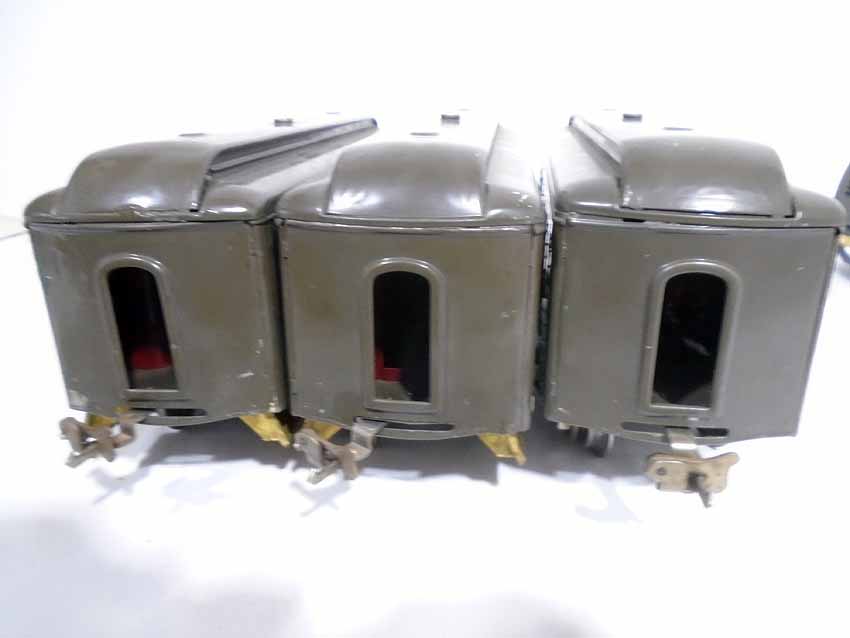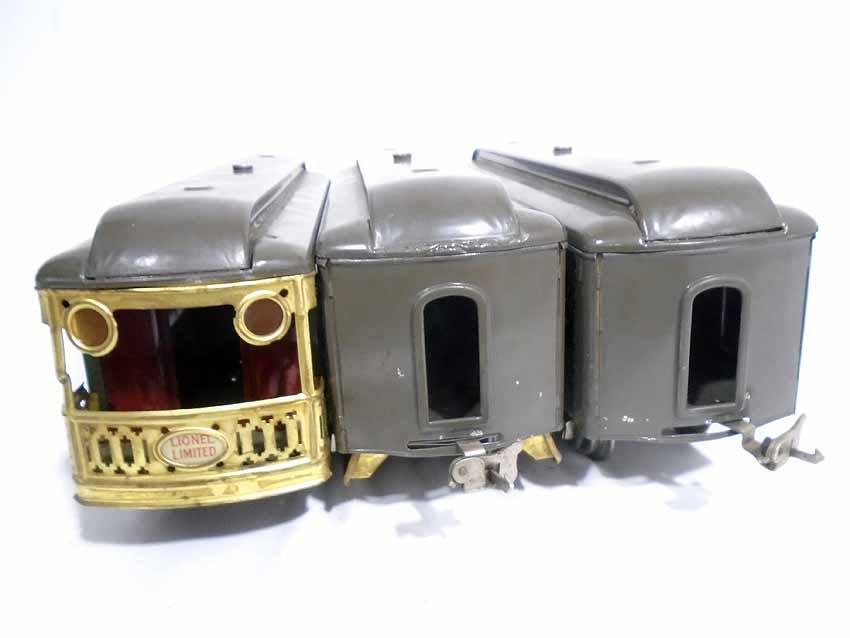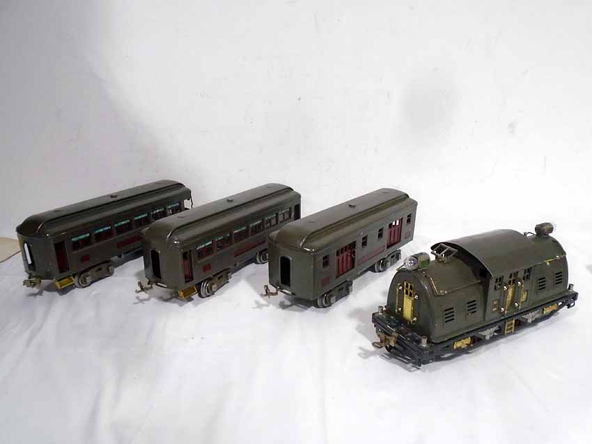 These are the Lionel Standard Set that was made in the later 1920s. Includes #10 Gray Electric Engine and #332/339/341 Olive Green Passenger Cars. No Boxes. Examine closely; what is pictured is what you will receive. Please add $50.00 for US-48 Shipping and Insurance (more west of the Mississippi).