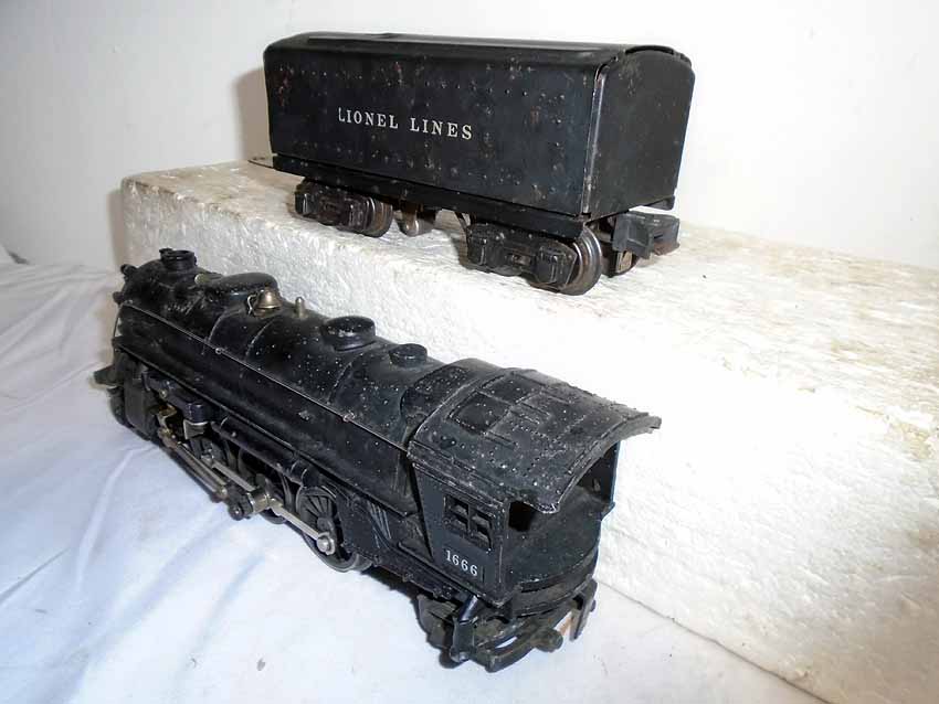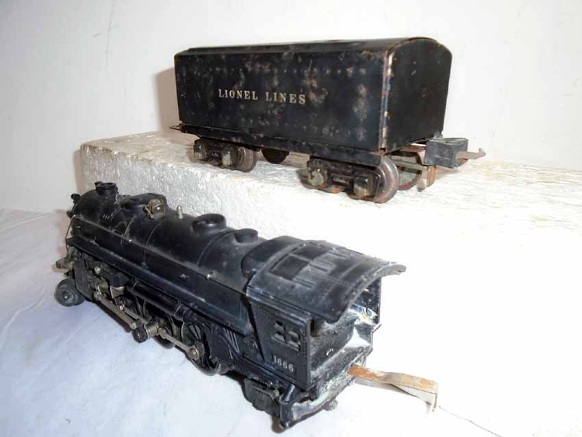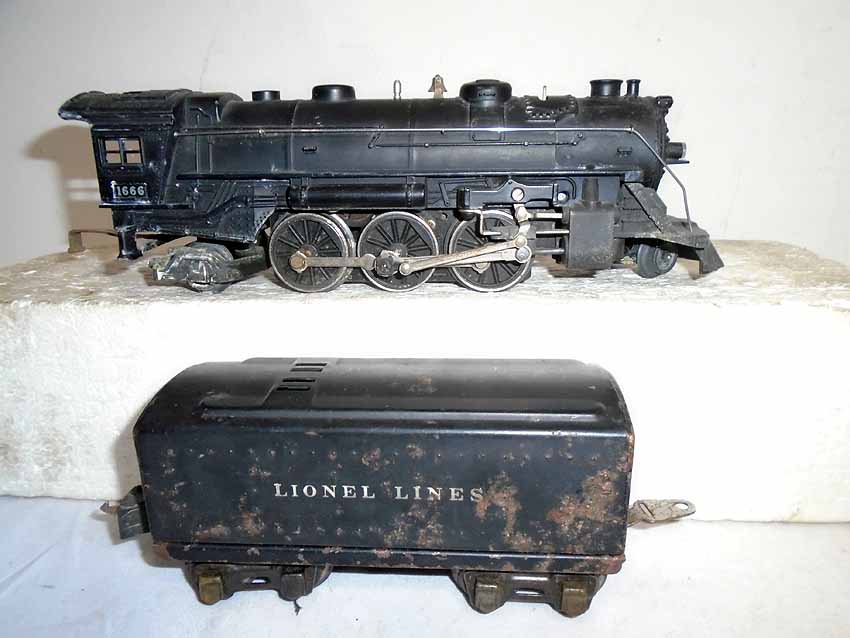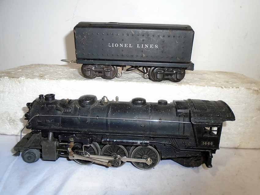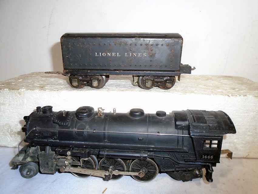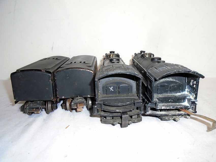 These are two #1666/2689W 2-6-2 Steam Engines & Whistle Tenders that Lionel made Pre War. No Boxes. Examine closely; what is pictured is what you will receive. Please add $45.00 for US-48 Shipping and Insurance (more west of the Mississippi). |