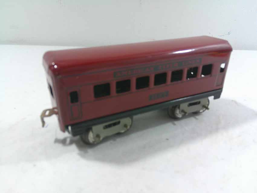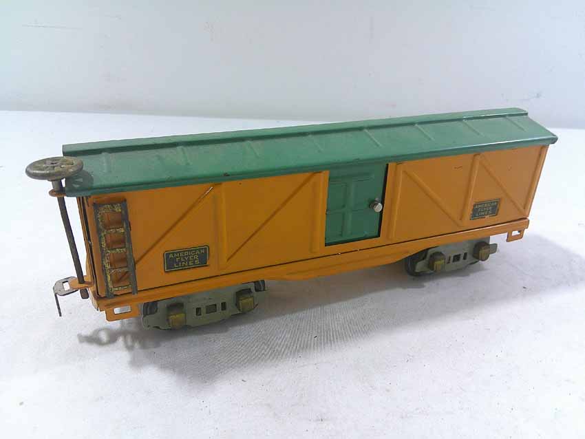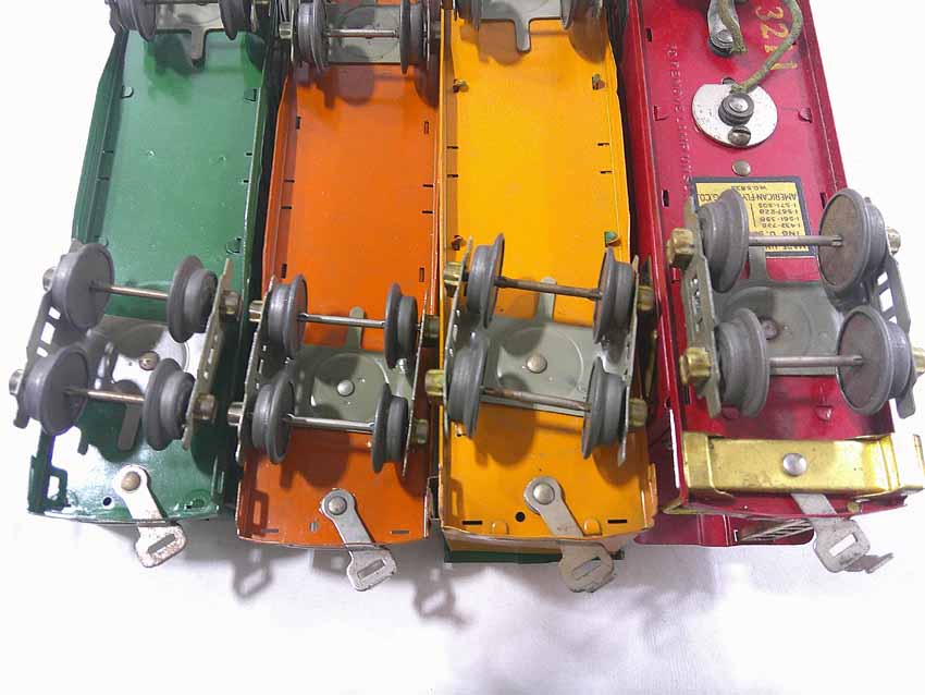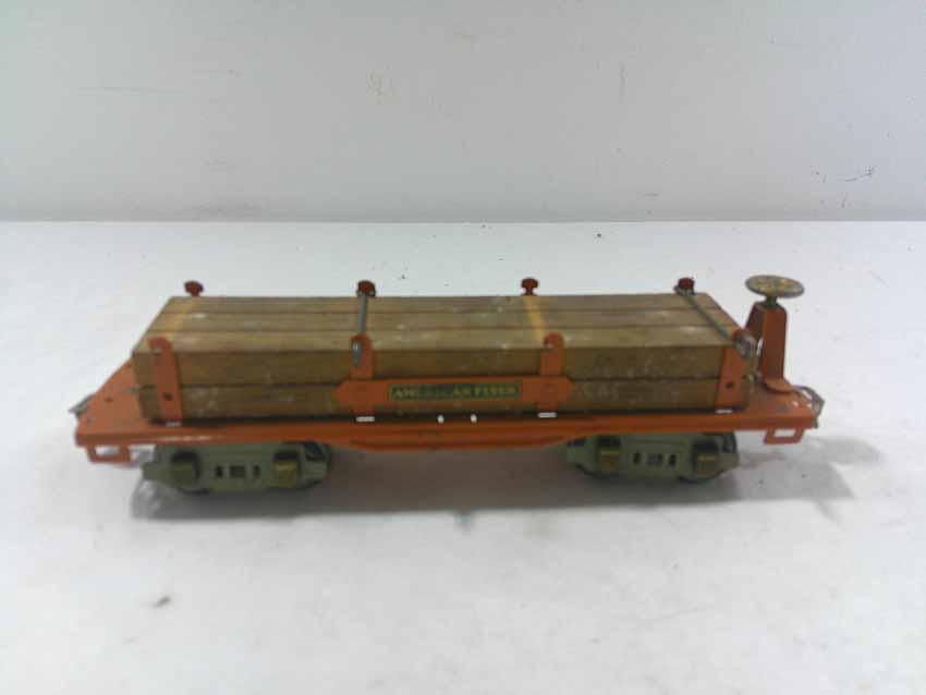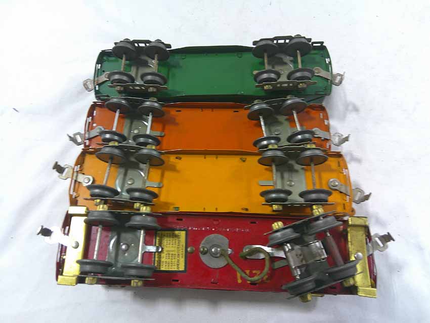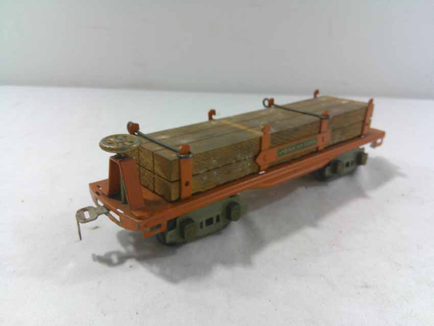 These are the American Flyer #1123/1123/1123 Passenger Coaches and four Assorted Freight Cars made Pre War. No Boxes. Examine very closely; what is pictured is what you will receive. Please add $45.00 for US-48 Shipping and Insurance (more west of the Mississippi). |