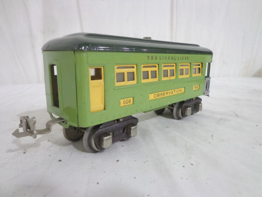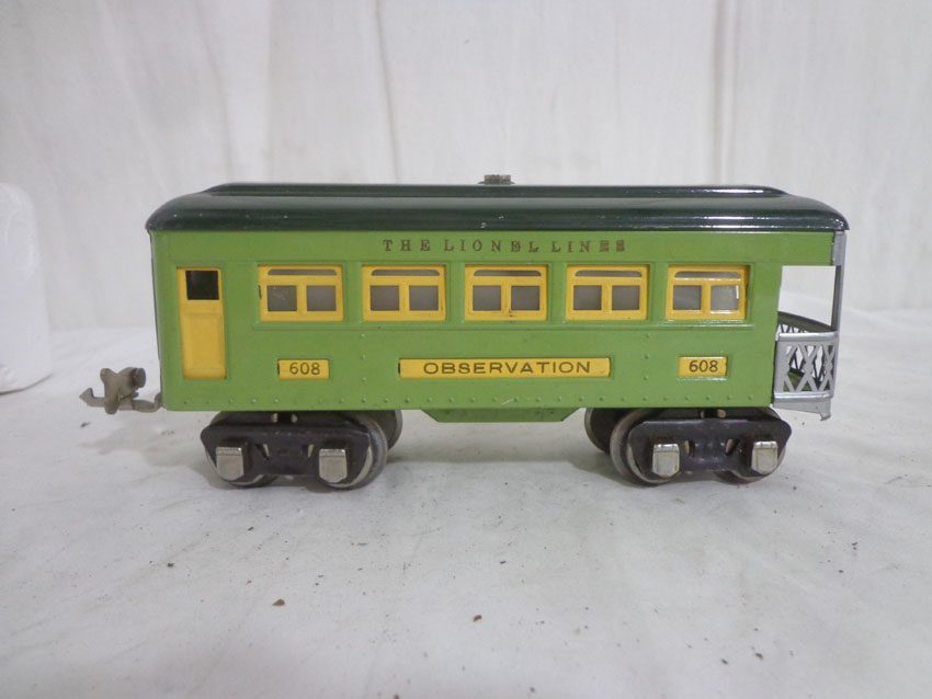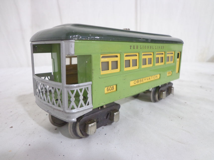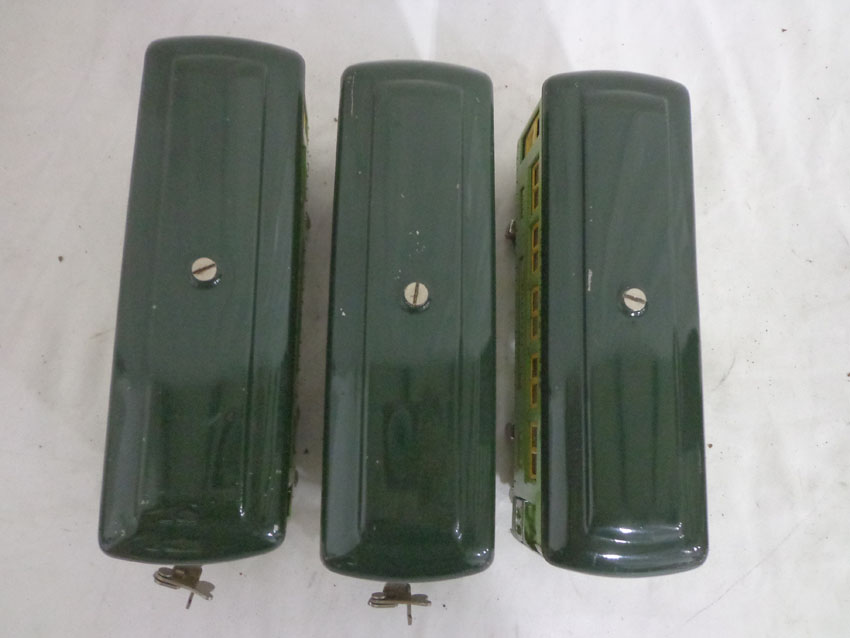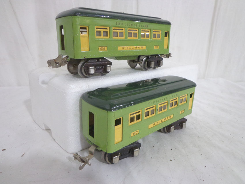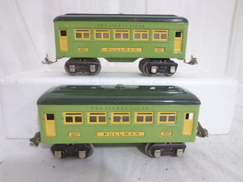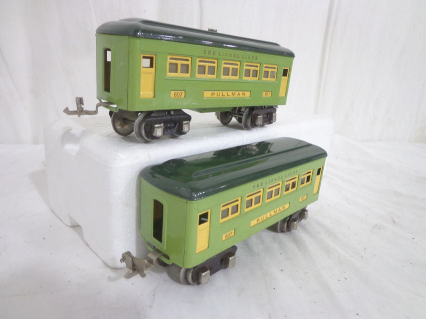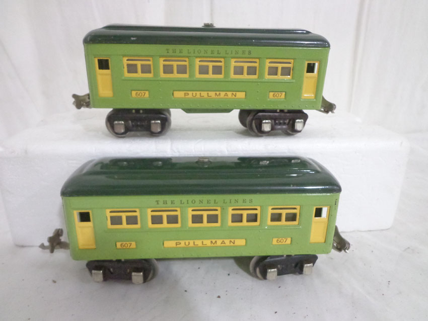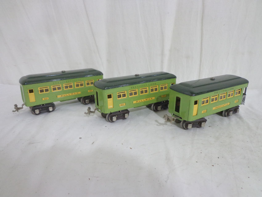 Lionel #607/607/608 Two-Tone Green Passenger Cars w/fishbellies