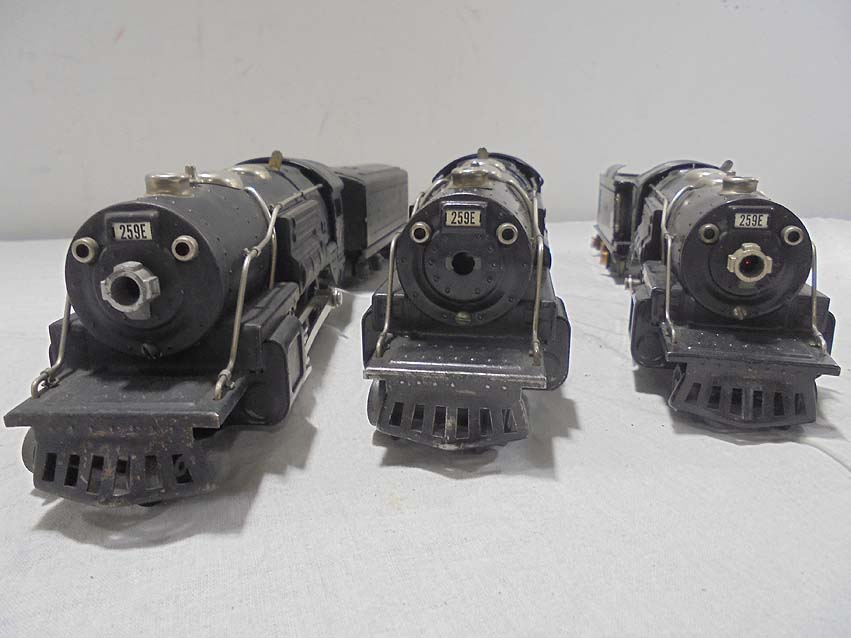 These are the #259E 2-4-2 Steam Engine Engine & Tender, #259E Steam Engine & #1689T Tender, and #259E 2-4-2 Steam Engine & Tender that Lionel made Pre War (no whistles). No Boxes. Examine very closely; what is pictured is what you will receive. Please add $50.00 for US-48 Shipping and Insurance (more west of the Mississippi).