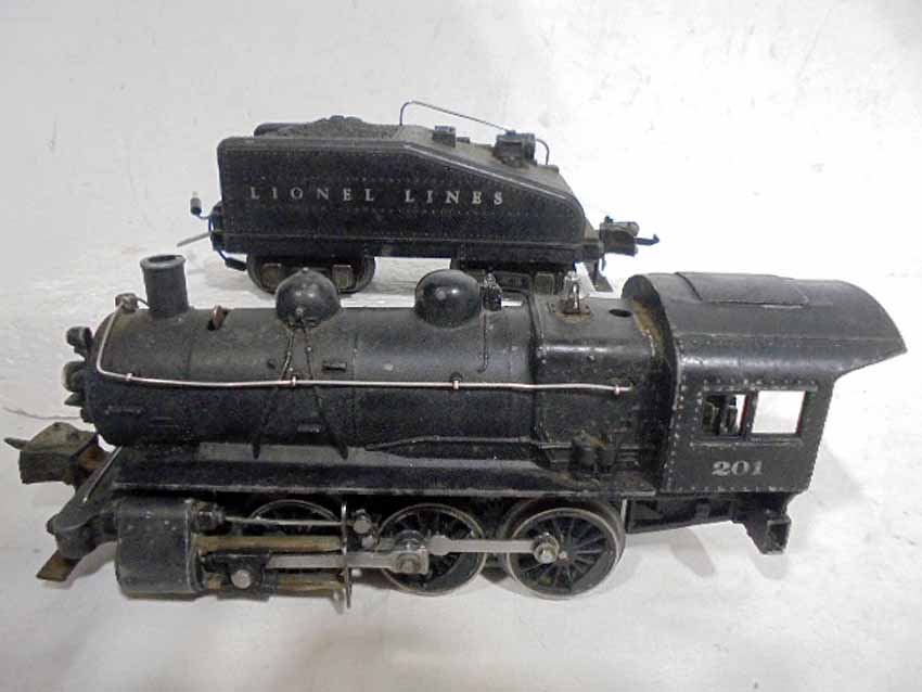 These are the #201/2201T 0-6-0 Engine & Tender that Lionel made Pre War. No Boxes. Examine very closely; what is pictured is what you will receive. Please add $35.00 for US-48 Shipping and Insurance (more west of the Mississippi).