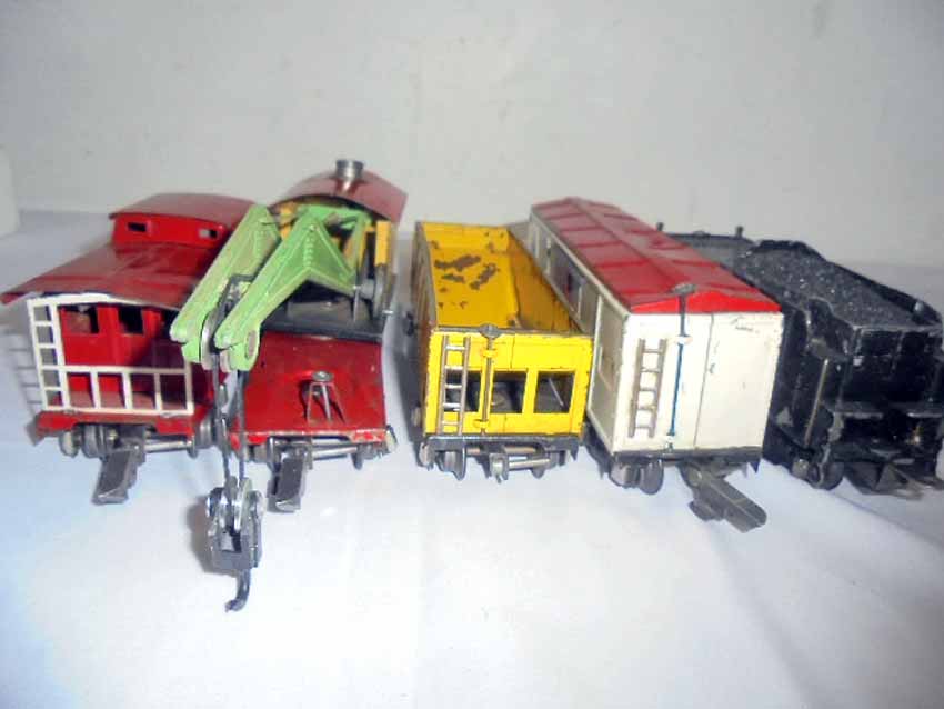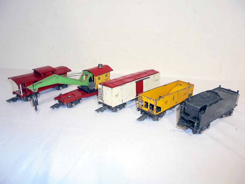 These are American Flyer Diecast Pennsylvania Tender and four Assorted Freight Cars from the later 1930s. No Boxes. Examine very closely; what is pictured is what you will receive. Please add $45.00 for US-48 Shipping and Insurance (more west of the Mississippi).