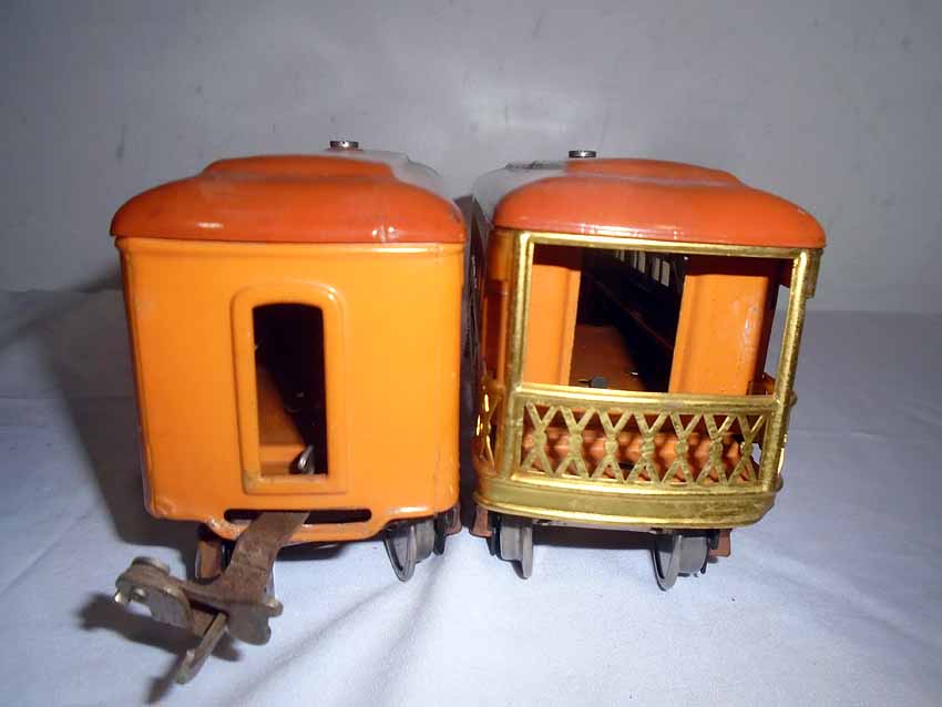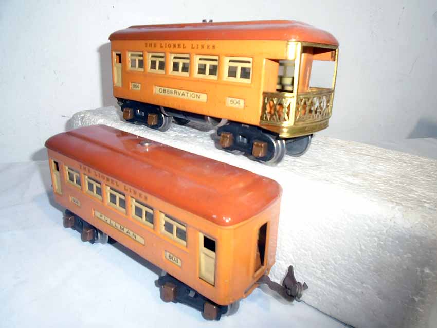 Nice Lionel #603/604 Two Tone Orange Passenger Cars/OBs