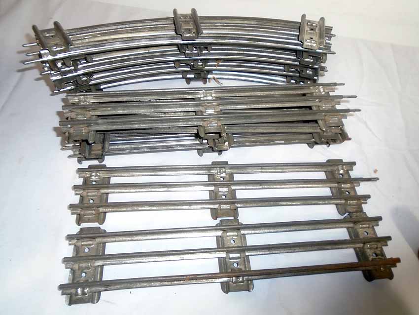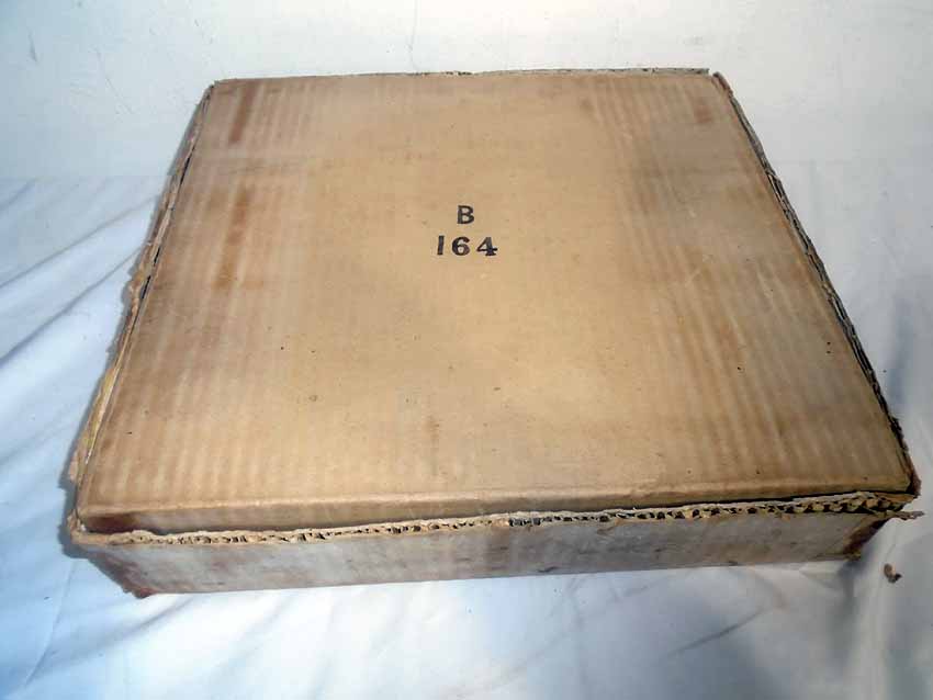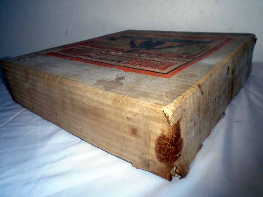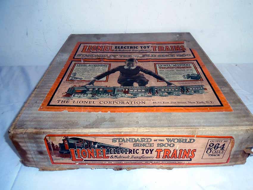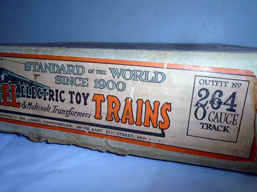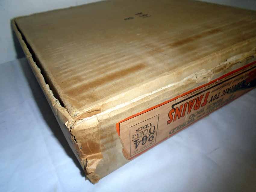These are the #264 Set Box w/Track, Rheostat, and Bulbs w/Container circa 1933. This Set would have included a #262E locomotive, #262T tender, a #600 Pullman car, a #601 observation car, and a #602 baggage car. PLEASE REMEMBER THAT YOU ARE ONLY BIDDING ON THE ORIGINAL SET BOX W/TRACK, RHEOSTAT AND BULBS W/CONTAINER. All Original in Our Opinion. Please add $35.00 for US-48 Shipping and Insurance (more west of the Mississippi).
