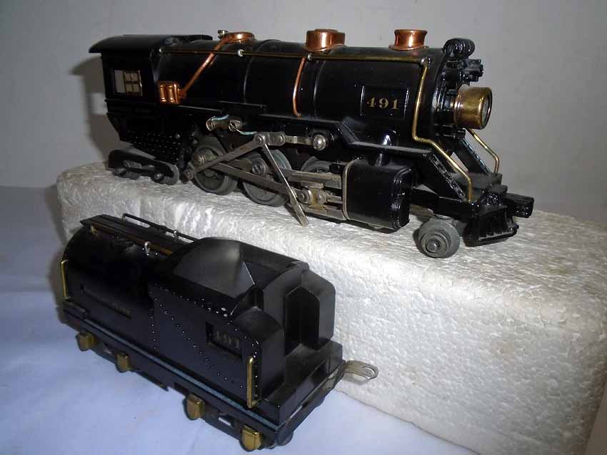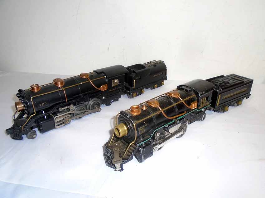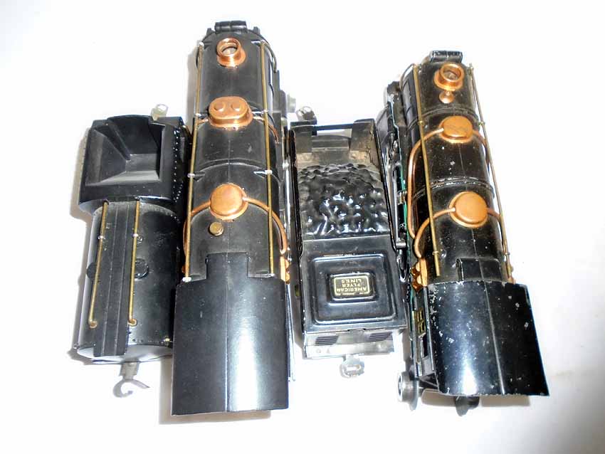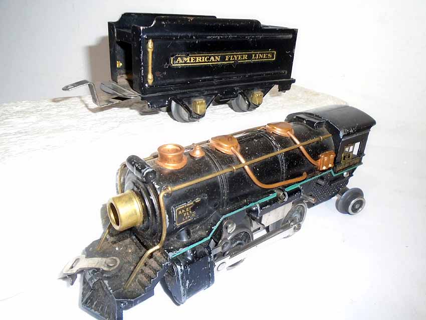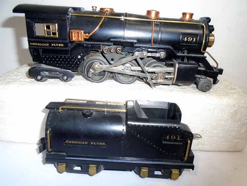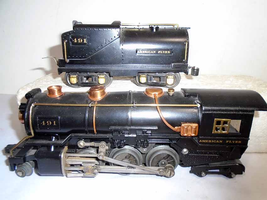 These are the #491 2-6-4 Engine(broken link) & #3316-type Tender and Engine (wheel variation changed) & Tender that American Flyer made in the 1930s. No Boxes. Examine closely; what is pictured is what you will receive. Please add $45.00 for US-48 Shipping and Insurance (more west of the Mississippi). |