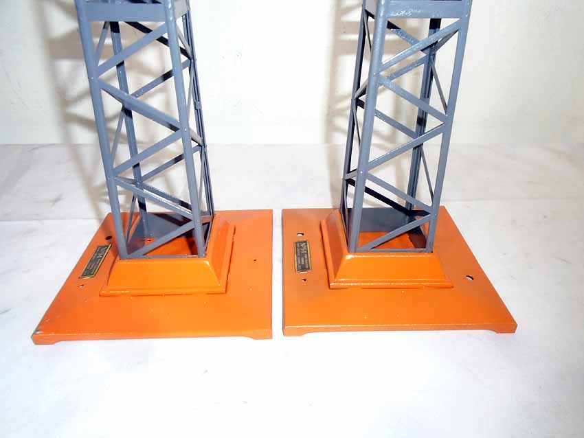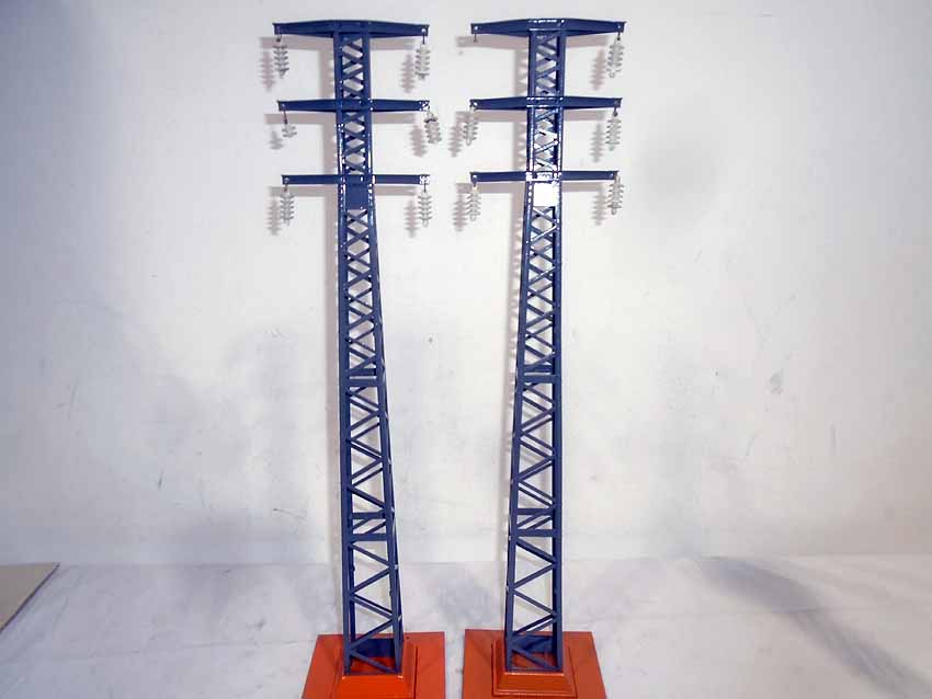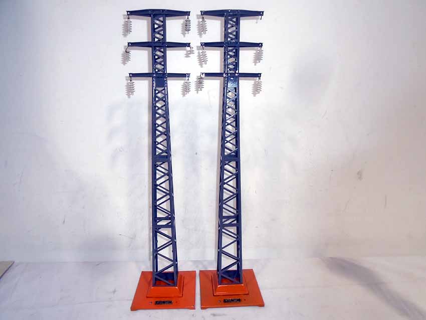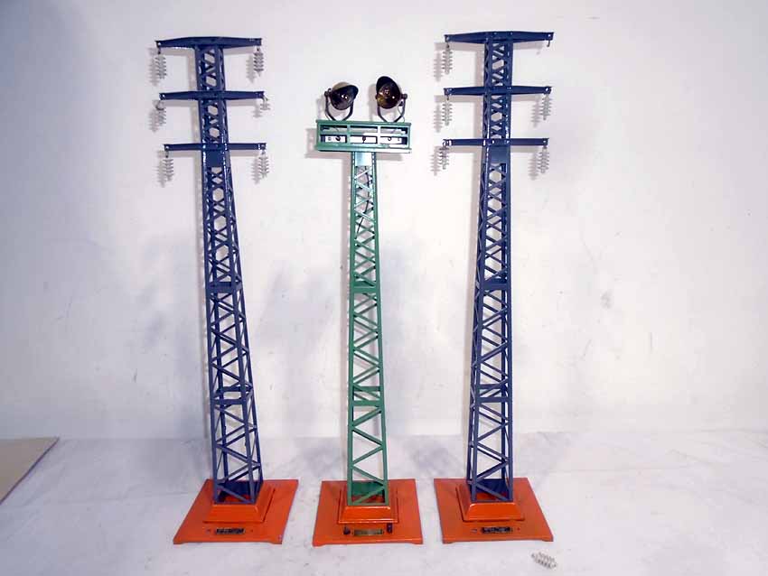 These are the Lionel Standard Gauge two 94 High Tension Towers and #92 Flood Light Tower from the 1920s/30s. No Boxes. Examine closely; what is pictured is what you will receive. Please add $50.00 for US-48 Shipping and Insurance (more west of the Mississippi).