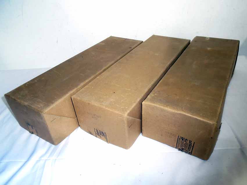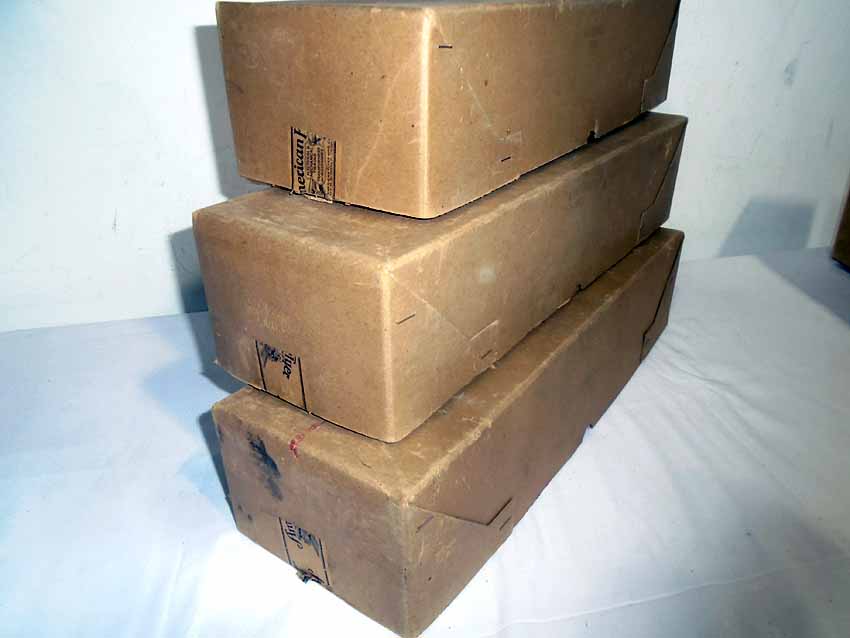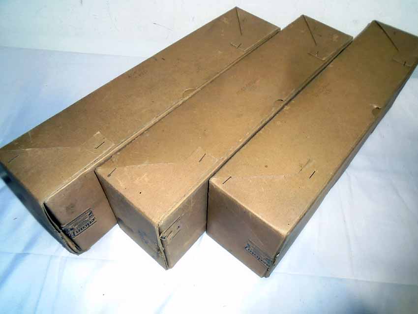 This is the American Flyer #4667 Red Locomotive Box, #4040 Baggage Car Box, #4041 Passenger Car Box, and #4012 Observation Car Box (Bidding on BOXES ONLY). PLEASE REMEMBER THAT YOU ARE ONLY BIDDING ON THE BOXES. Examine closely; what is pictured is what you will receive. All Original in Our Opinion. Please add $35.00 for US-48 Shipping and Insurance (more west of the Mississippi). |