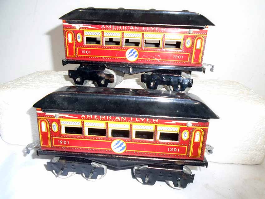 These are the AF #1200/1201/1201 Passenger Cars from the 1920s. No Boxes. Examine very closely; what is pictured is what you will receive. Please add $45.00 for US-48 Shipping and Insurance (more west of the Mississippi).