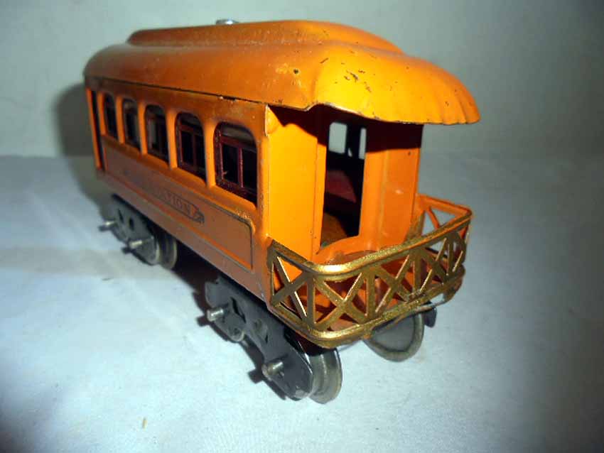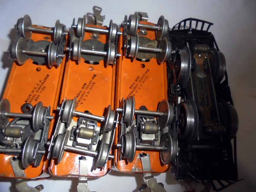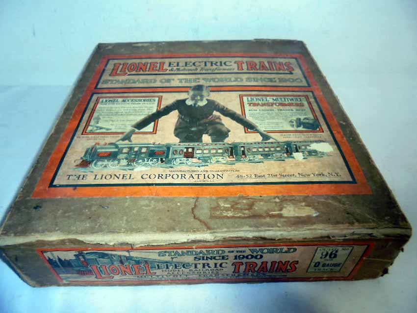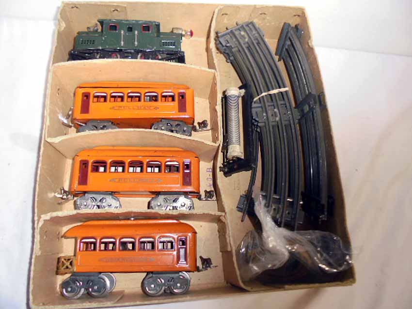 This is the NICE #96 Vintage Passenger Set that Lionel made Pre War. Includes #153 Green Electric Engine, #603/603/604 Orange Passenger Cars, Rheostat, Curved Track and three Connectors. Original Set Box/two papers. Examine very closely; what is pictured is what you will receive. Please add $50.00 for US-48 Shipping and Insurance (more west of the Mississippi).