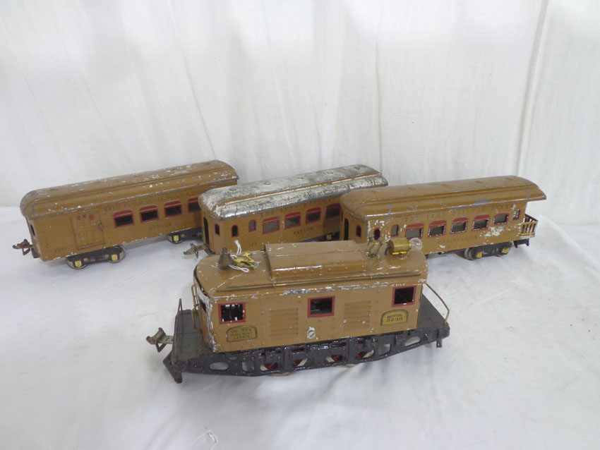 Ives Standard Gauge #3236 Tan Electric Engine, #170 Buffet Car, #171 Parlor Car and #172 Observation Car