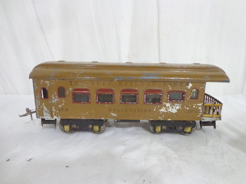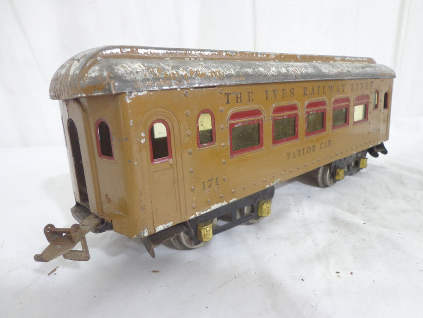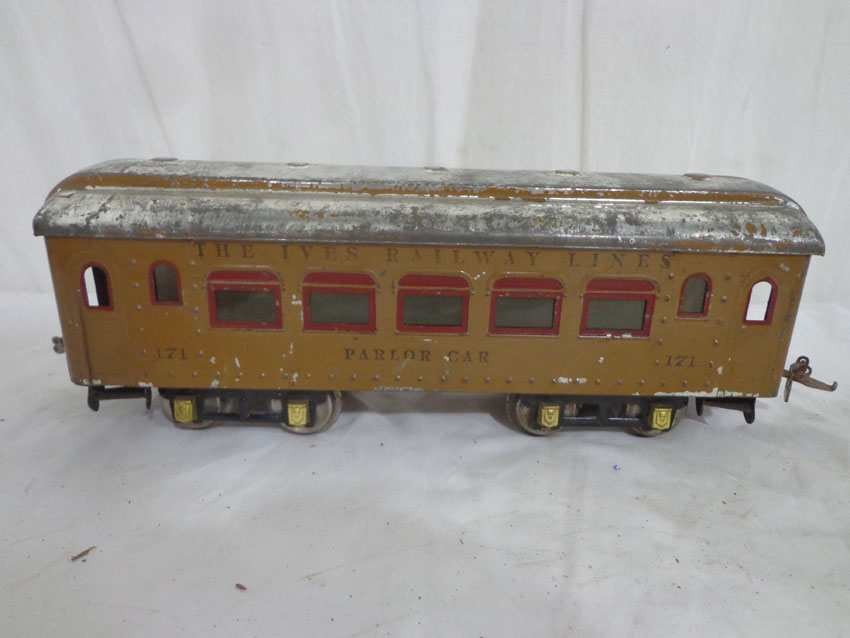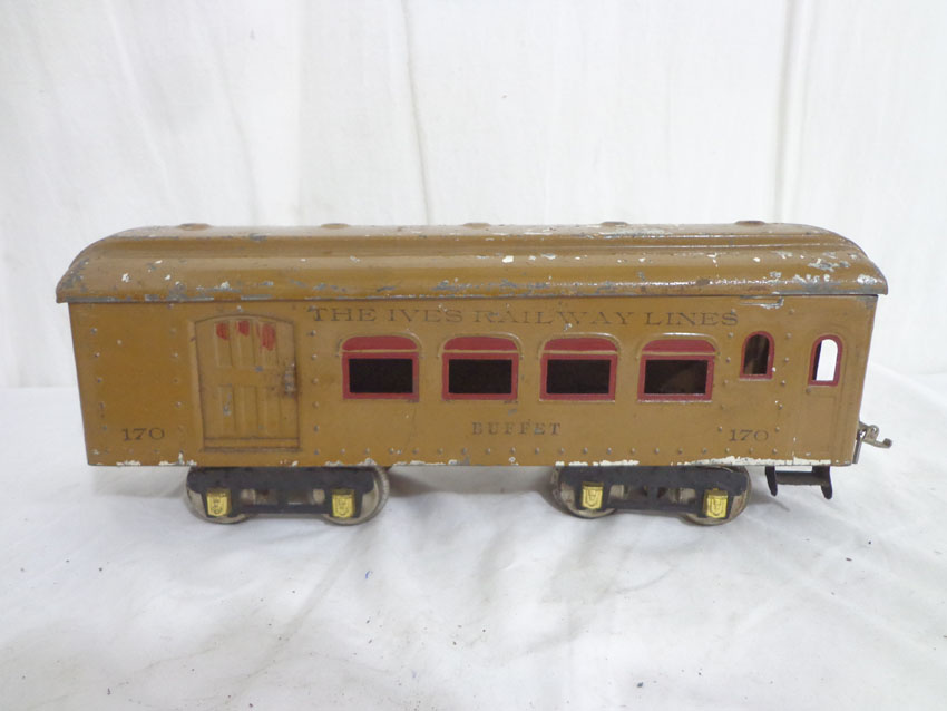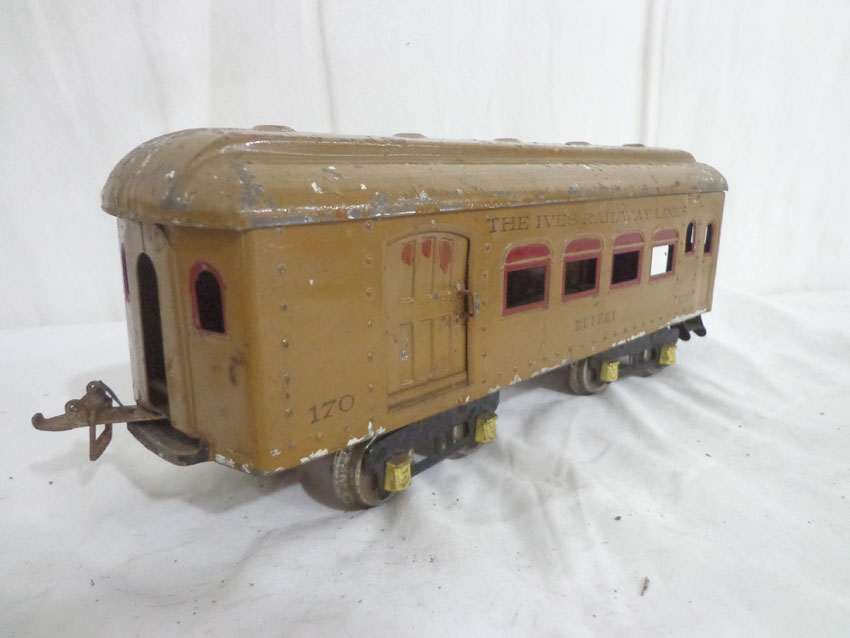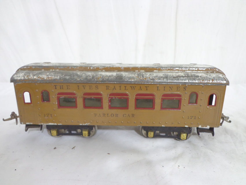 These are the Wide Gauge #3236 Electric Engine, #170 Buffet Car, #171 Parlor Car and #172 Observation Car that Ives made in the 1920s. No Boxes. Examine closely; what is pictured is what you will receive. Please add $50.00 for US-48 Shipping and Insurance (more west of the Mississippi).