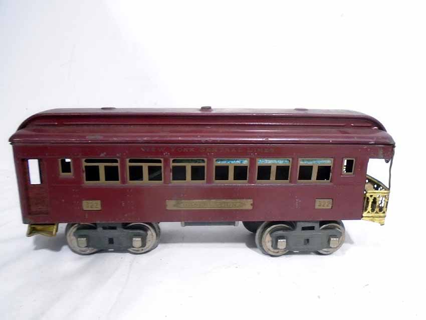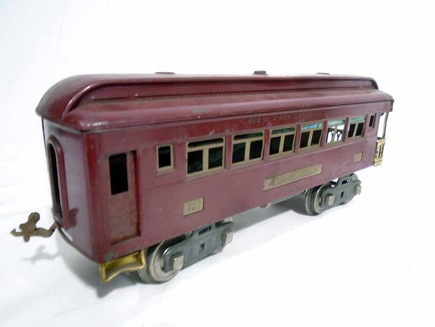 These are the Lionel Standard Gauge #320/319/319/319/322 NYC Lines Maroon Passenger Cars made Pre War. No Boxes. Examine very closely; what is pictured is what you will receive. Please add $50.00 for US-48 Shipping and Insurance (more west of the Mississippi).
