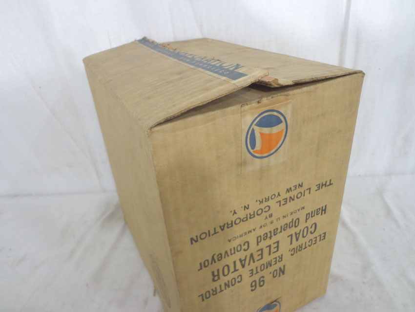 This is the #96 Manual Remote Control Coal Elevator that Lionel made in the late 1930s. Original Box (opened from bottom). Examine very closely; what is pictured is what you will receive. Please add $35.00 for US-48 Shipping and Insurance (more west of the Mississippi). |