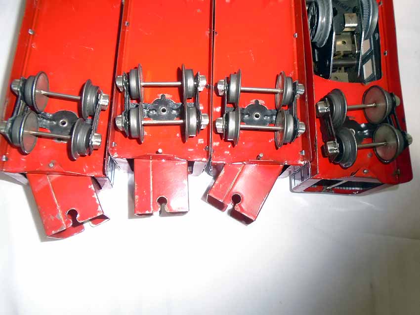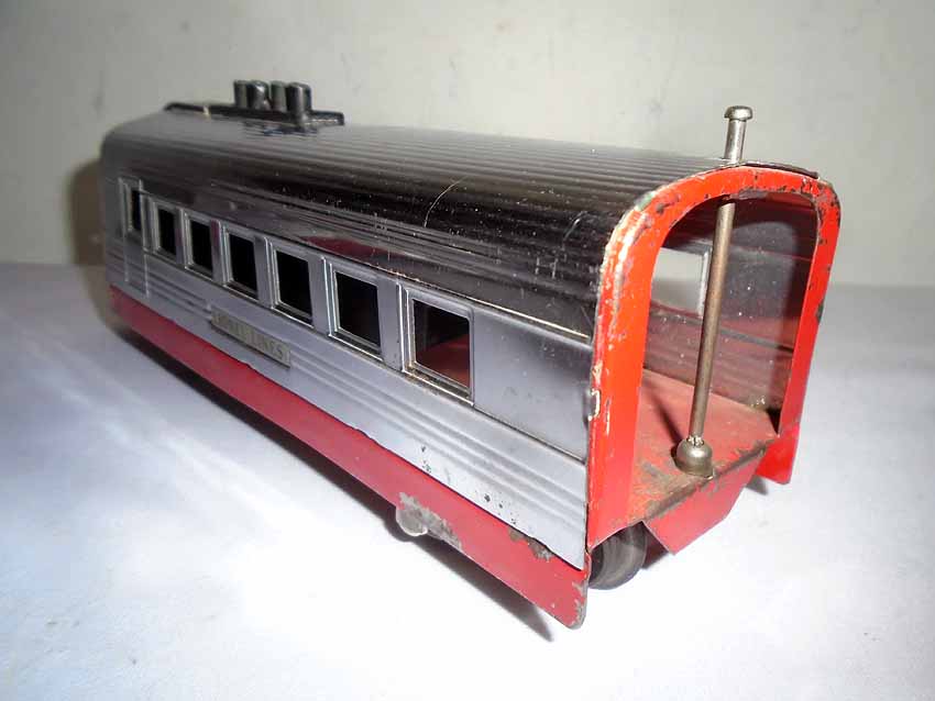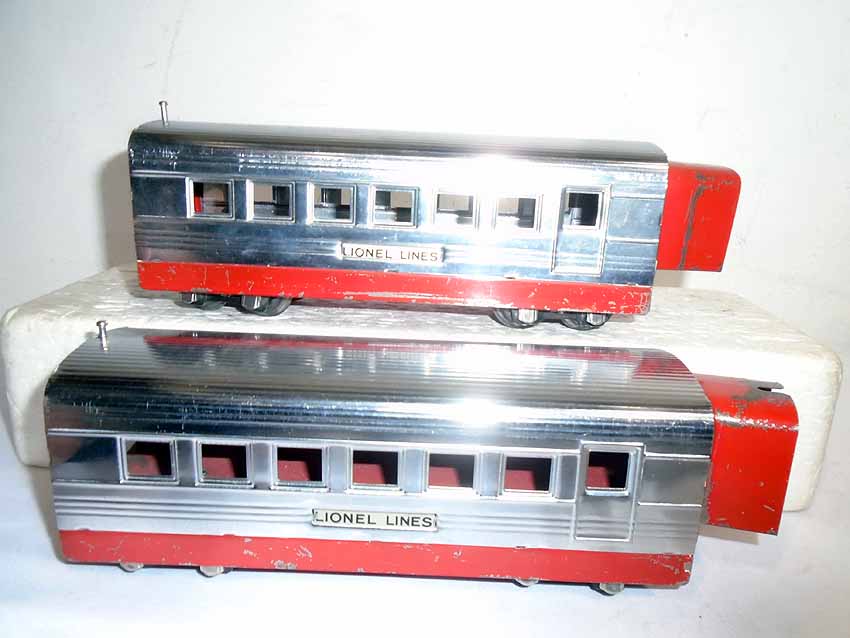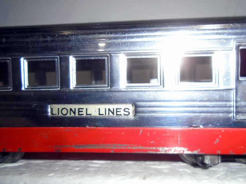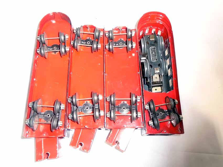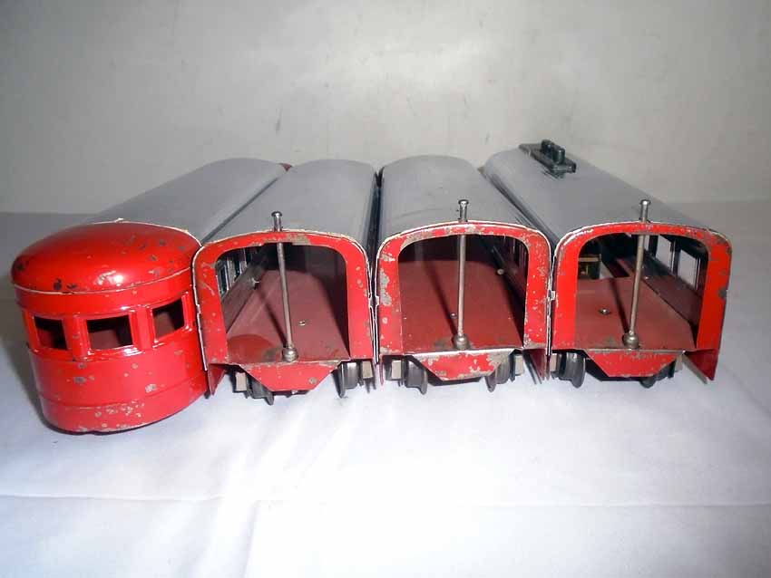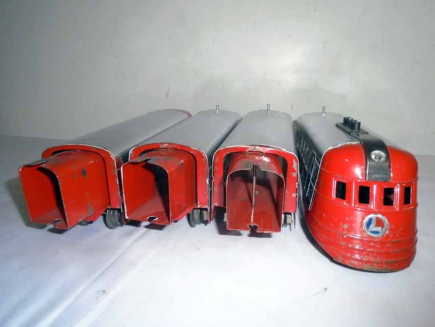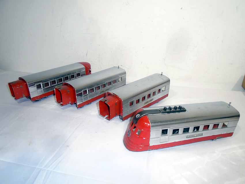 This is the Lionel Red/Silver Streamline Engine and three Streamline Passenger Cars from the 1930s No Boxes. Examine very closely; what is pictured is what you will receive. Please add $35.00 for US-48 Shipping and Insurance (more west of the Mississippi). |