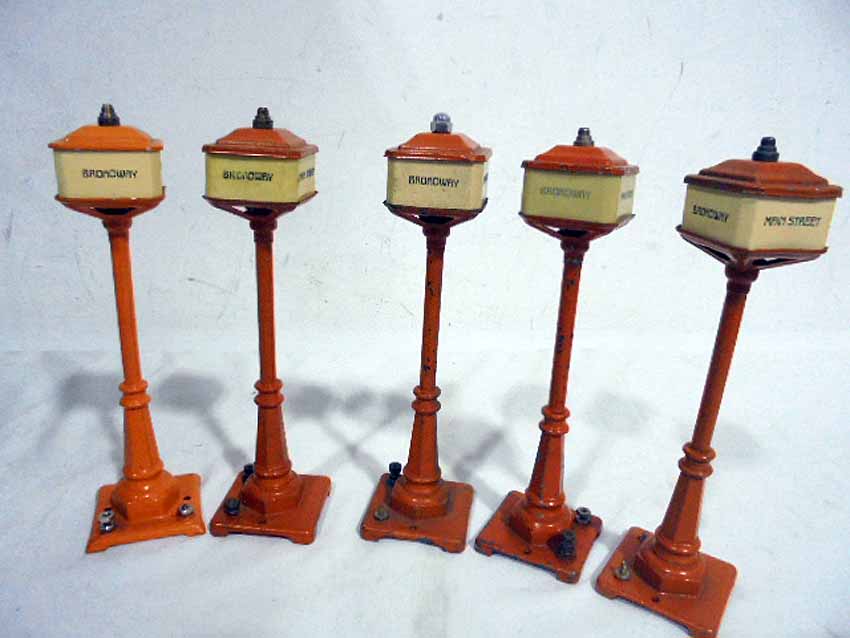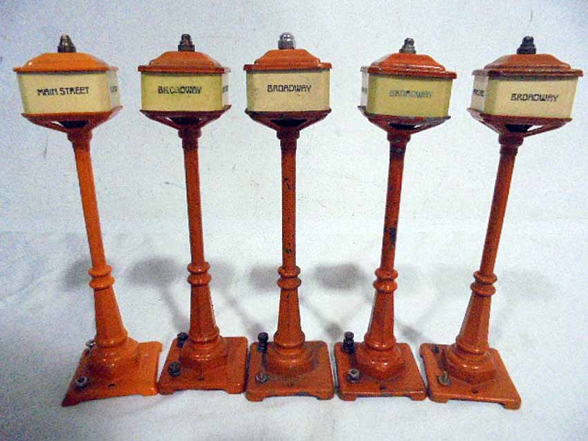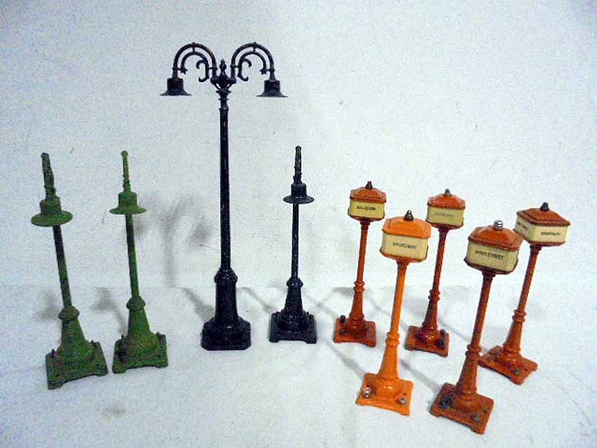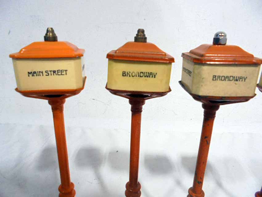 These are nine Assorted Street Lamps that Lionel made Pre War. No Boxes. Examine very closely; what is pictured is what you will receive. Please add $45.00 for US-48 Shipping and Insurance (more west of the Mississippi).