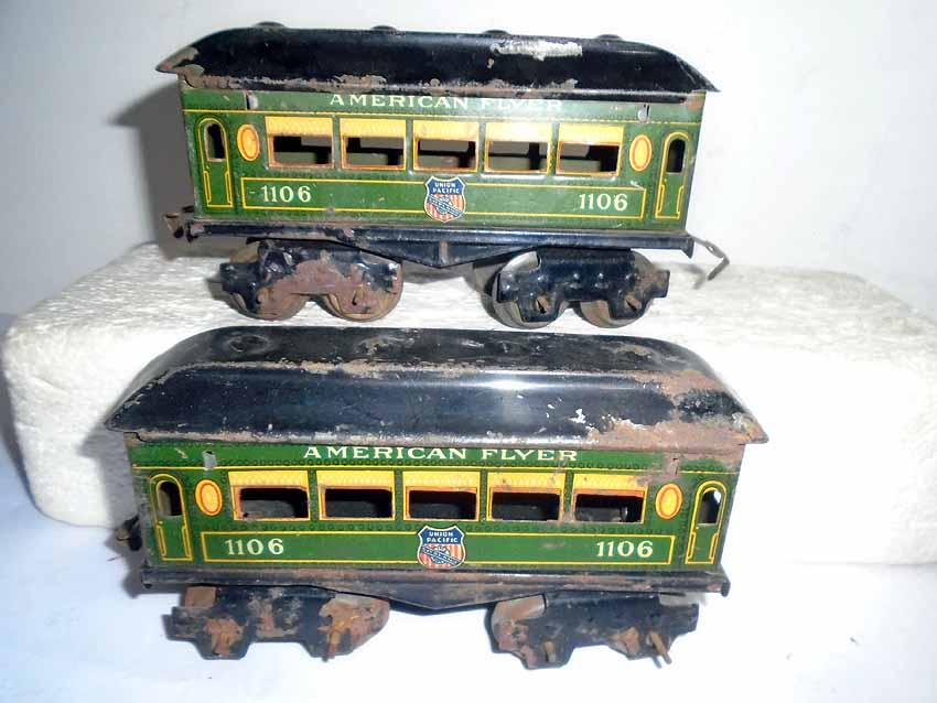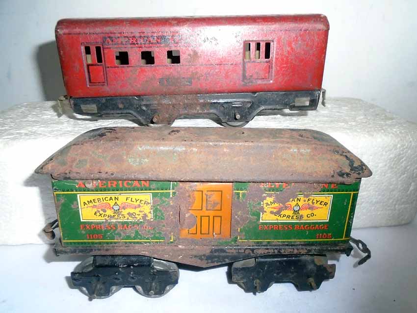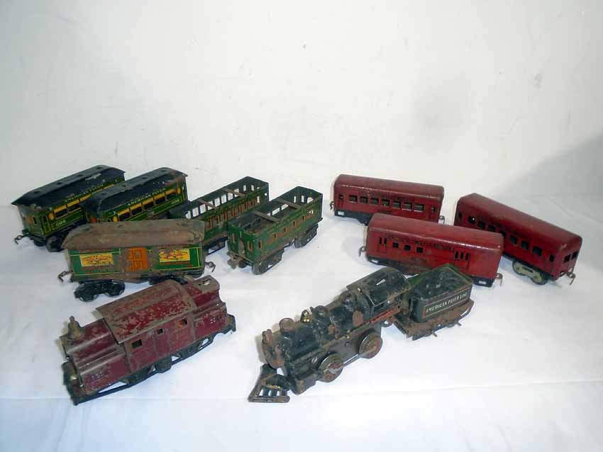 These are the Ives/AF #3253 Electric Engine, Wind Up Steam Engine & Tender and #1122/1123/1123/61/62/1106/1106/1105 Passenger Cars (issues w/ most). No Boxes. Examine very closely; what is pictured is what you will receive. Please add $45.00 for US-48 Shipping and Insurance (more west of the Mississippi).