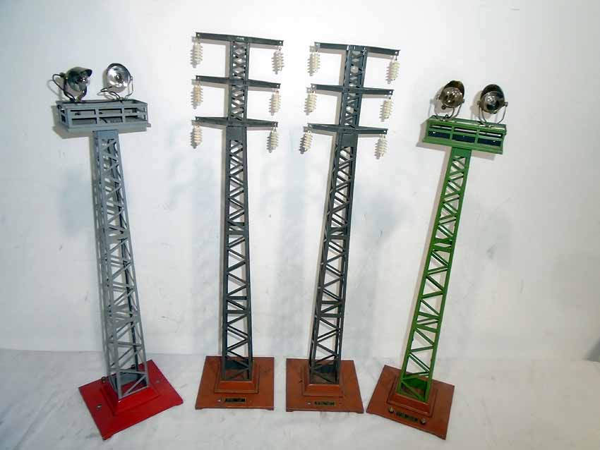 Lionel Standard Gauge two #92 Flood Light Towers and two #94 High Tension Towers