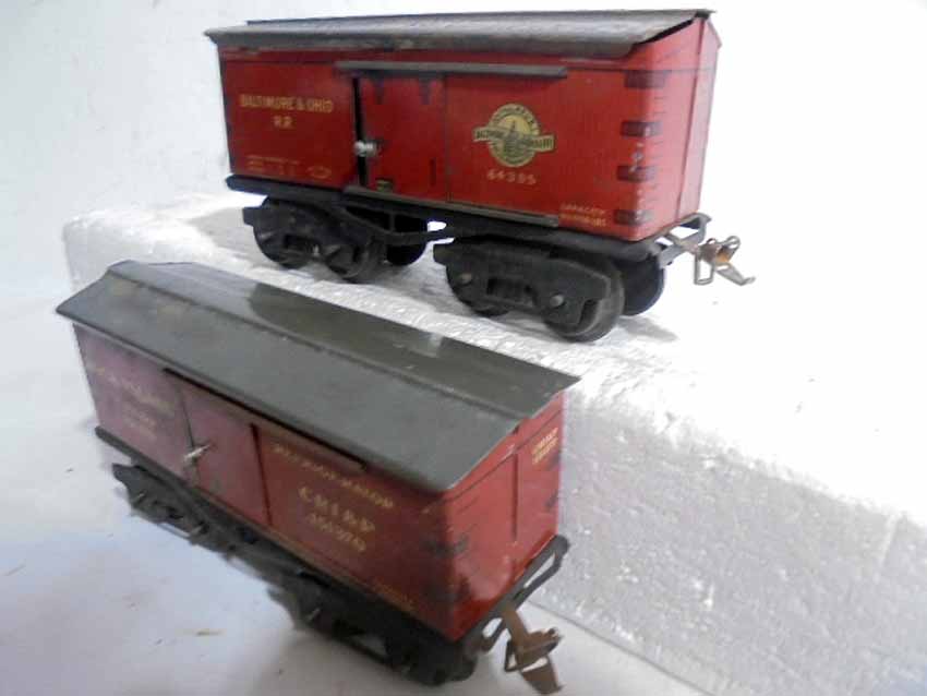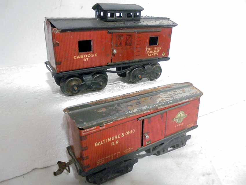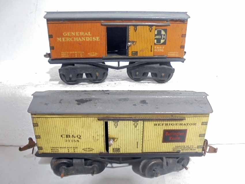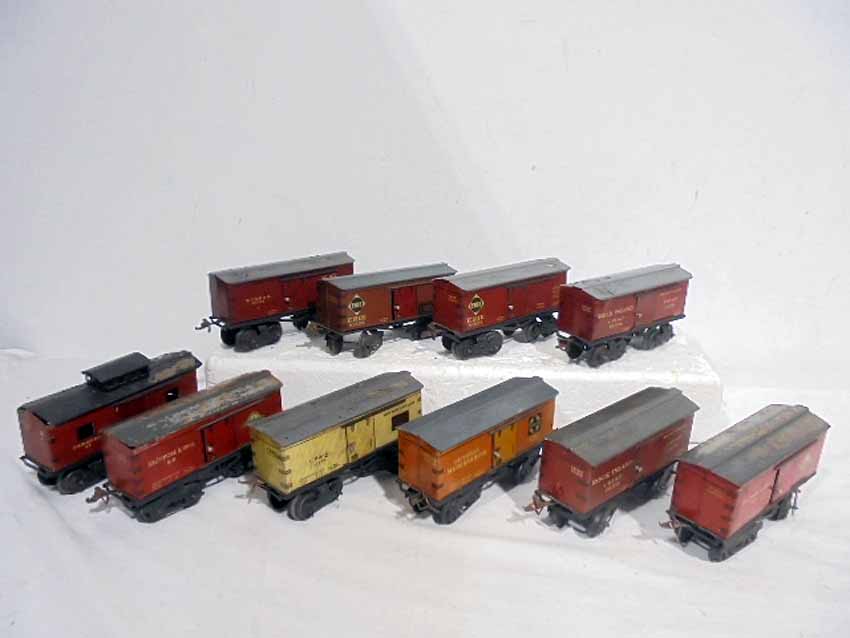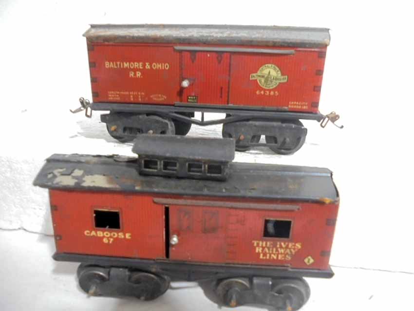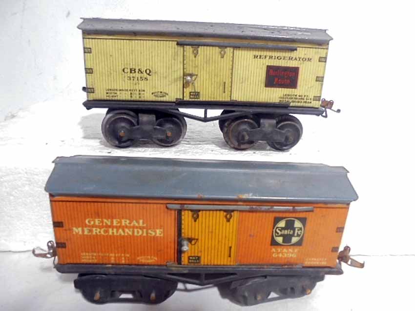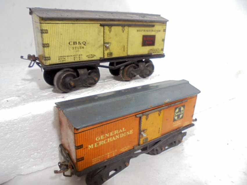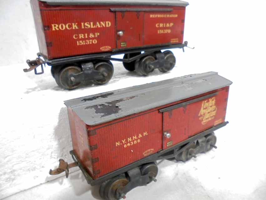 These are ten Assorted Freight Cars that Ives made Pre War. No Boxes. Examine closely; what is pictured is what you will receive. Please add $45.00 for US-48 Shipping and Insurance (more west of the Mississippi). |