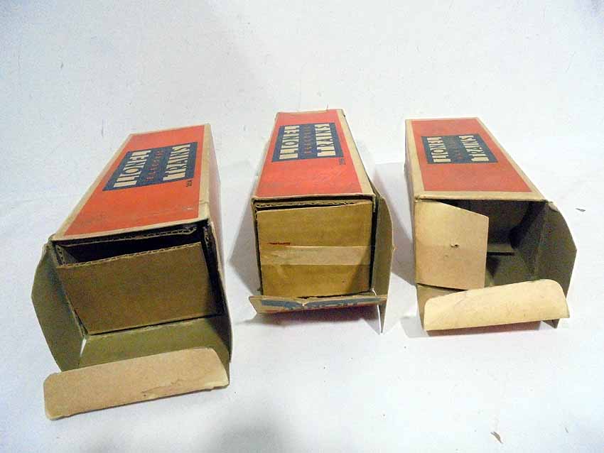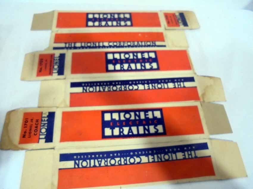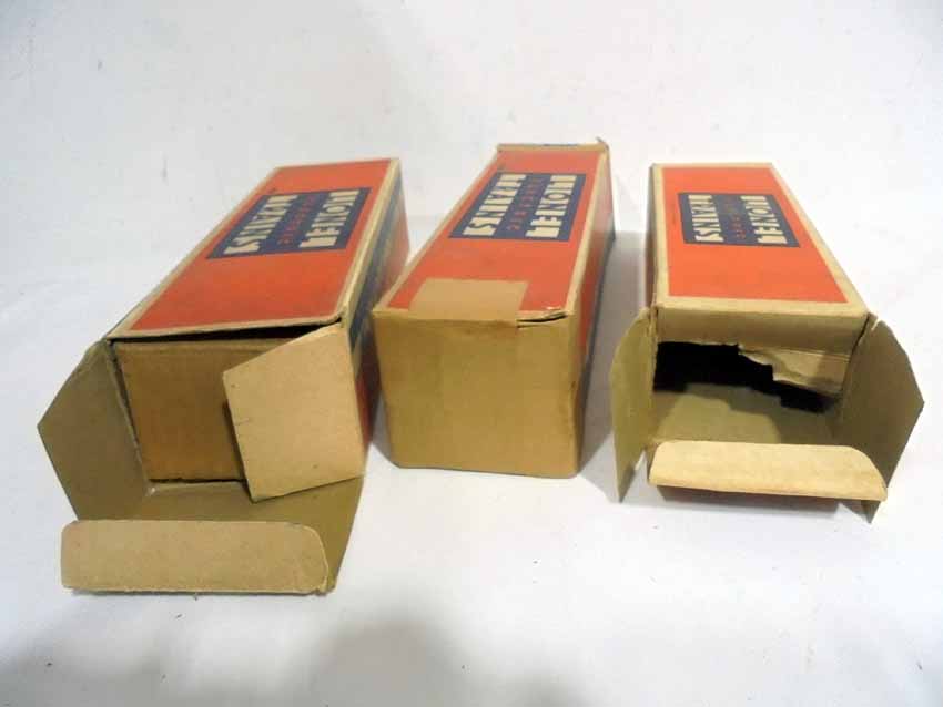 These are eleven Assorted Lionel Boxes and three Inserts made Pre War. PLEASE REMEMBER THAT YOU ARE ONLY BIDDING ON THE ORIGINAL STAR BOXES. All Original in Our Opinion. Please add $40.00 for US-48 Shipping and Insurance (more west of the Mississippi). |