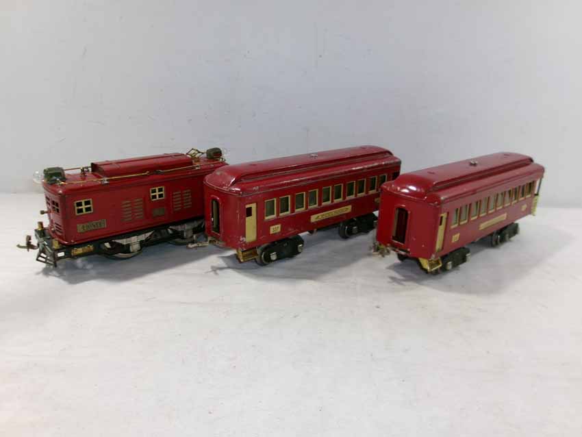This is the Lionel Standard Gauge #8 Red Electric Engine and #35/36 Red Passenger Cars made Pre War. No Boxes. Examine very closely; what is pictured is what you will receive. Please add $45.00 for US-48 Shipping and Insurance (more west of the Mississippi).