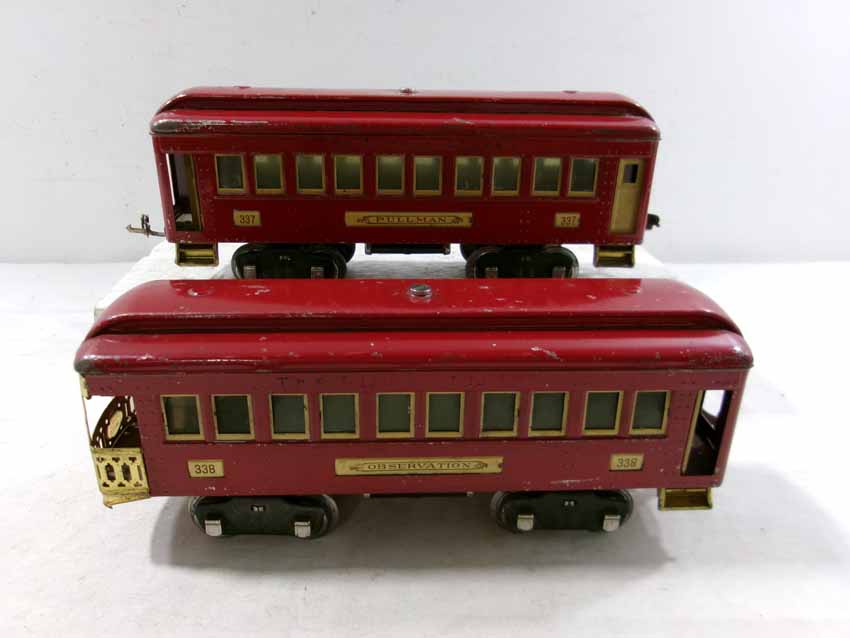 Lionel Standard Gauge #8 Red Electric Engine and #337/338 Red Passenger Cars