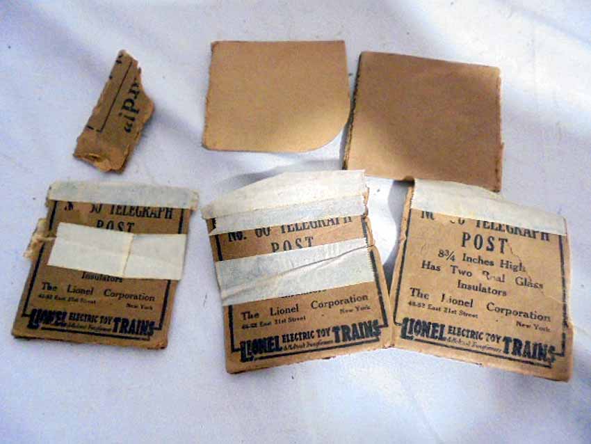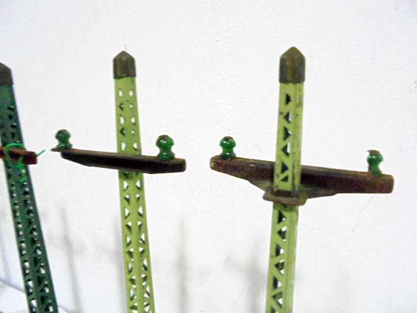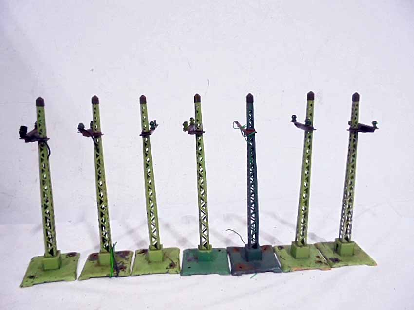 These are thirteen Assorted Telegraph Poles and Railroad Crossing Signs that Lionel made in the late 1910s/early 1920s. Six Original Boxes (tattered). Examine closely; what is pictured is what you will receive. Please add $40.00 for US-48 Shipping and Insurance (more west of the Mississippi).