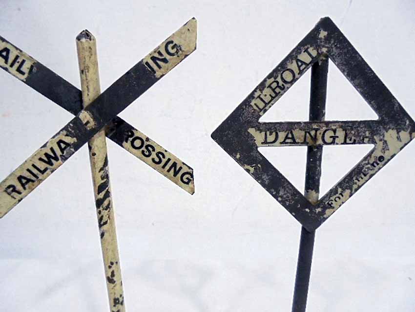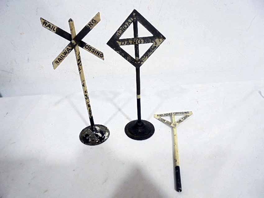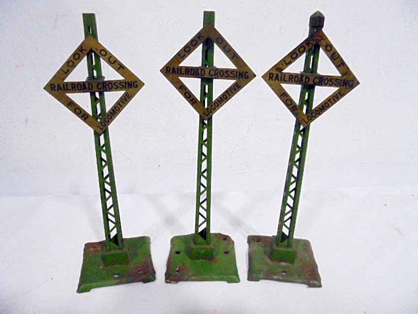 13 Assorted Lionel Telegraph Poles and Railroad Crossing Signs/Early OBs