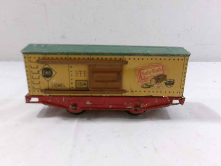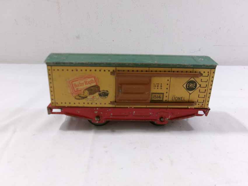 Lionel #1512 Gondola, #1514 Baby Ruth Box Car, #1515 Sunoco Tank Car, and #1517 Caboose/REd Frames Clockworks