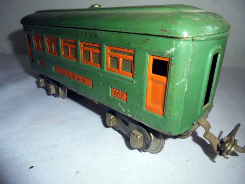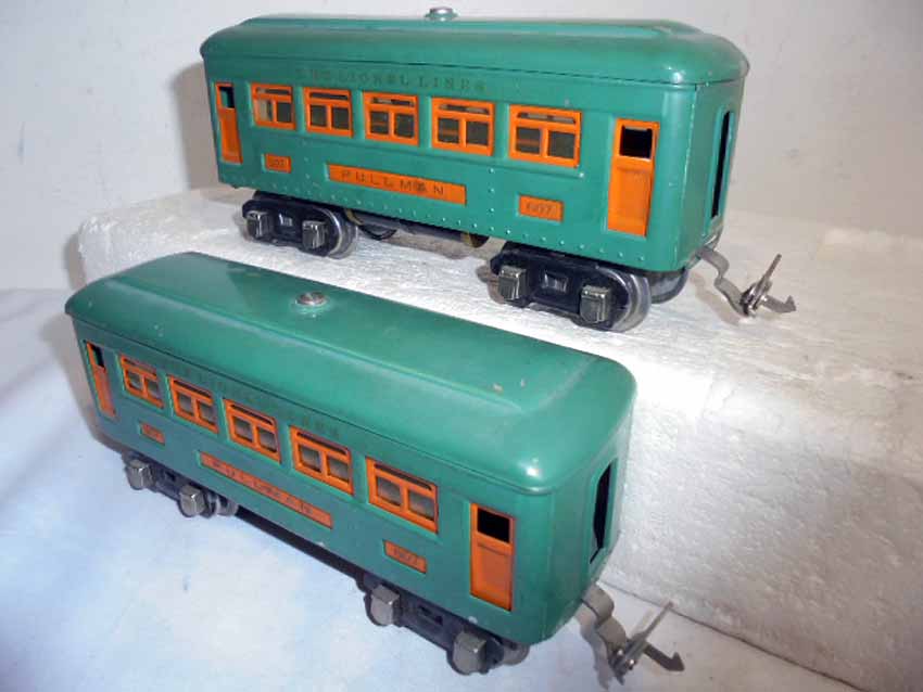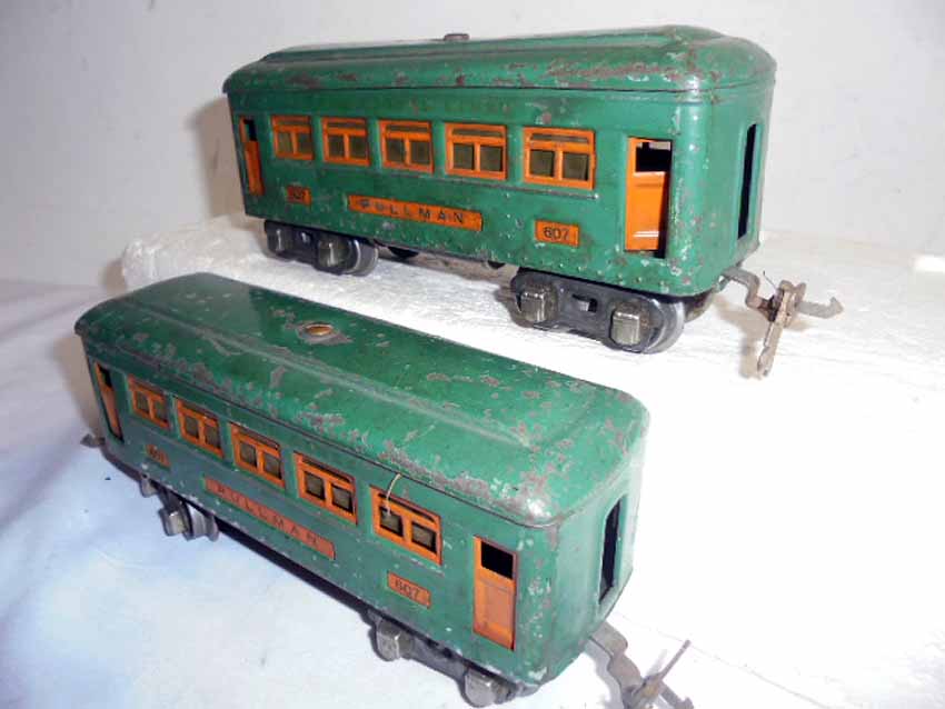 These are two #253 Peacock Electric Engines and #607/607/607/607/607/607/607/608/608/608/608 Peacock Passenger Cars that Lionel made Pre War. Examine closely; what is pictured is what you will receive. Please add $50.00 for US-48 Shipping and Insurance (more west of the Mississippi).