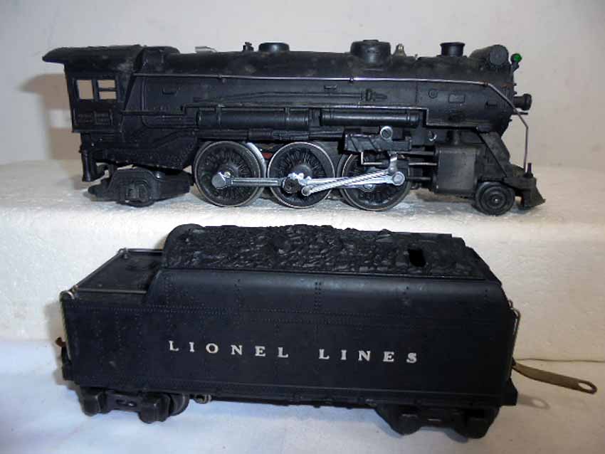 These are the #225E/2225W 2-6-2 Steam Engine and Whistle Diecast Tender that Lionel made in the late 1930s/early 1940s. Examine closely; what is pictured is what you will receive. No Boxes. Please add $40.00 for US-48 Shipping and Insurance (more west of the Mississippi).