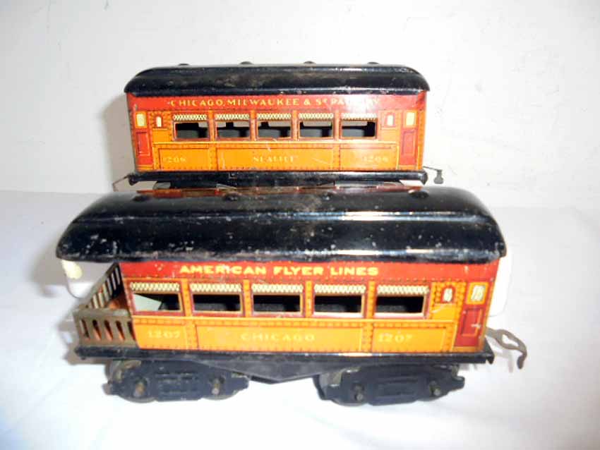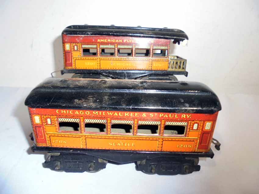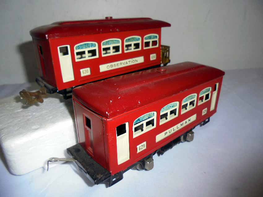 These are the AF #1205/1206/1207 Orange Passenger Cars and the Lionel #629/629/630 Red Passenger Cars (Refurbushed). No Boxes. Examine closely; what is pictured is what you will receive. Please add $35.00 for US-48 Shipping and Insurance (more west of the Mississippi). |