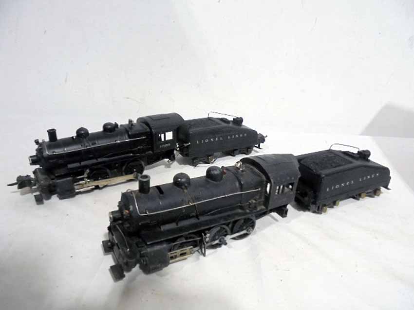 These are the #201/2203T 0-6-0 Steam Engine & Tender and #1662/2203T 0-4-0 Steam Engine & Tender that Lionel made Pre War. No Boxes. Examine closely; what is pictured is what you will receive. Please add $50.00 for US-48 Shipping and Insurance (more west of the Mississippi).
